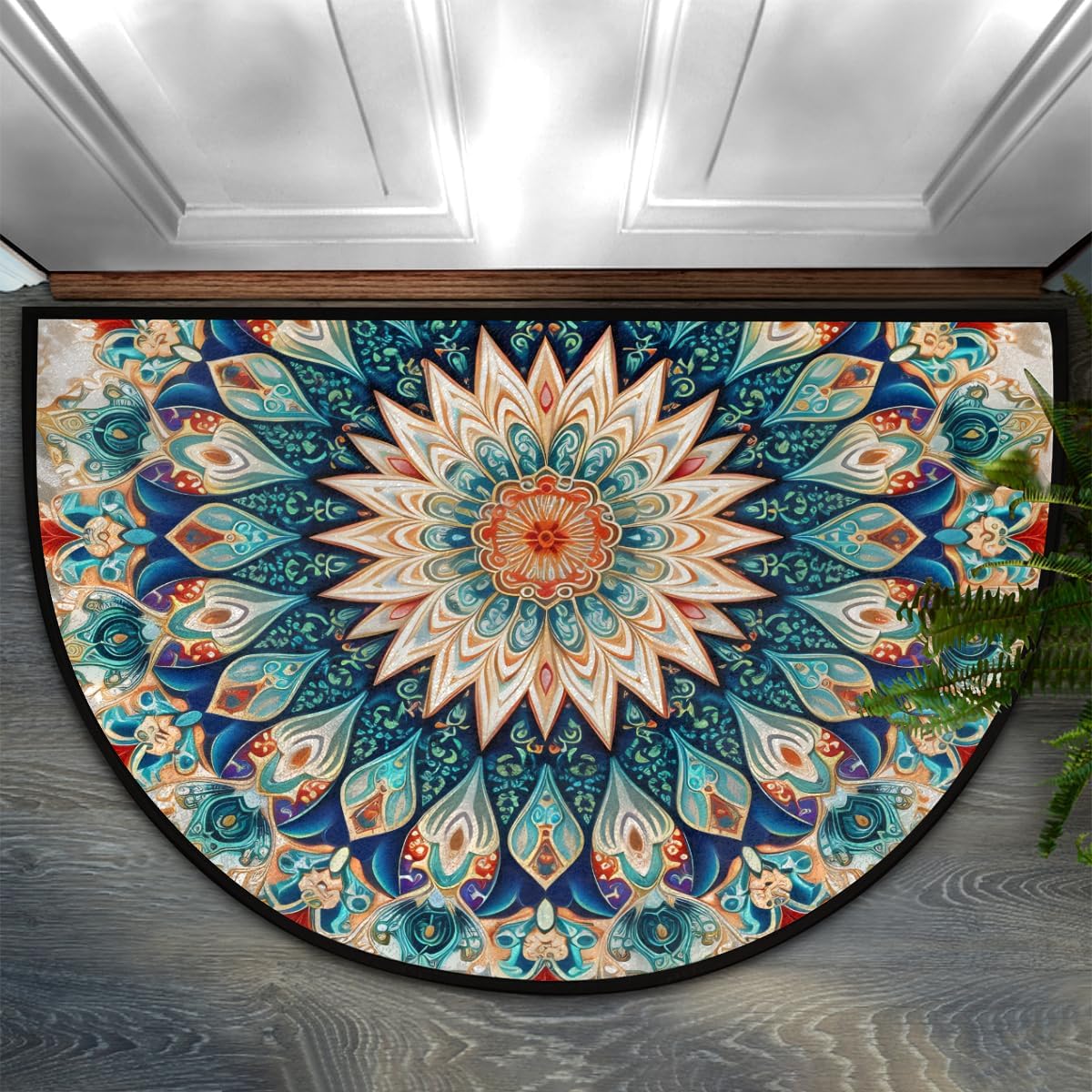 Durable Material: The floor mat is made of micro fiber (surface) and non-slip silica gel (back).Clean Floors: The floor mat can wipe away dirt, mud and snow from your shoes, keeping your home clean.Decorative Design: The floor mat is semicircle shape, which is a perfect decoration to your front door or back door.Easy Care: The half round doormat can be easily to clean by shaking off dust and dirt or using a brush/vacuum.Size: The length of the floor mat is about 36/63 inches, the width of the floor mat is about 24/39.4 inches. Thin enough to allows most doors to open over.Muti Use: Great for entrances, doorways, kitchens, conservatories, laundry room, mudroom, front or back door, pet doors, garage and even caravans.Package Included:1pc half round door matPlease Note:1. Due to the light difference, the item's color may be slightly different from the pictures.2. Please allow 0.5-2 cm differences due to manual measurement.3. Since the doormat was folded up during transportation, it¡¯s normal to see there will be creases on the rug. Please lay it flat and put some heavy things on it for 2 to 3 days and wait patiently for its recovery. If you have any problems with the product, you can directly contact us and we will reply you within 51 hours.