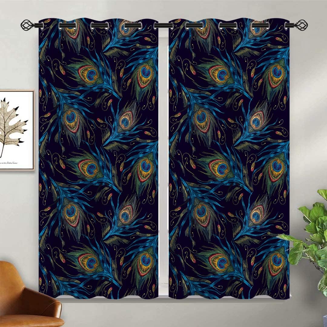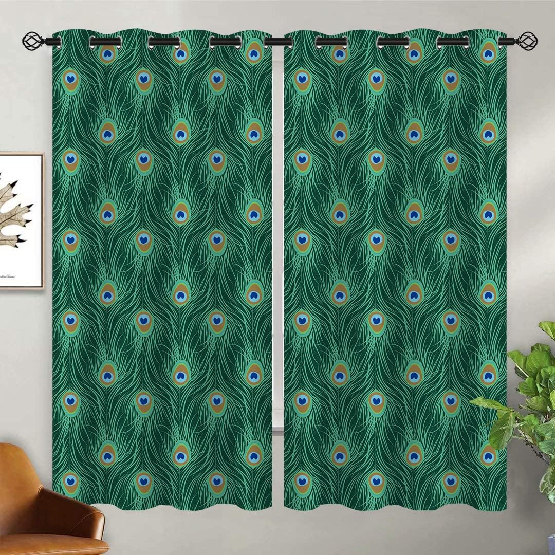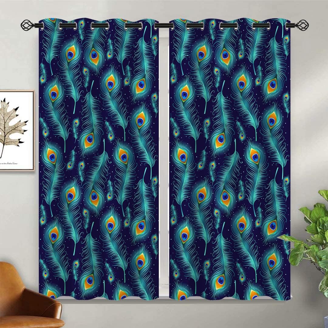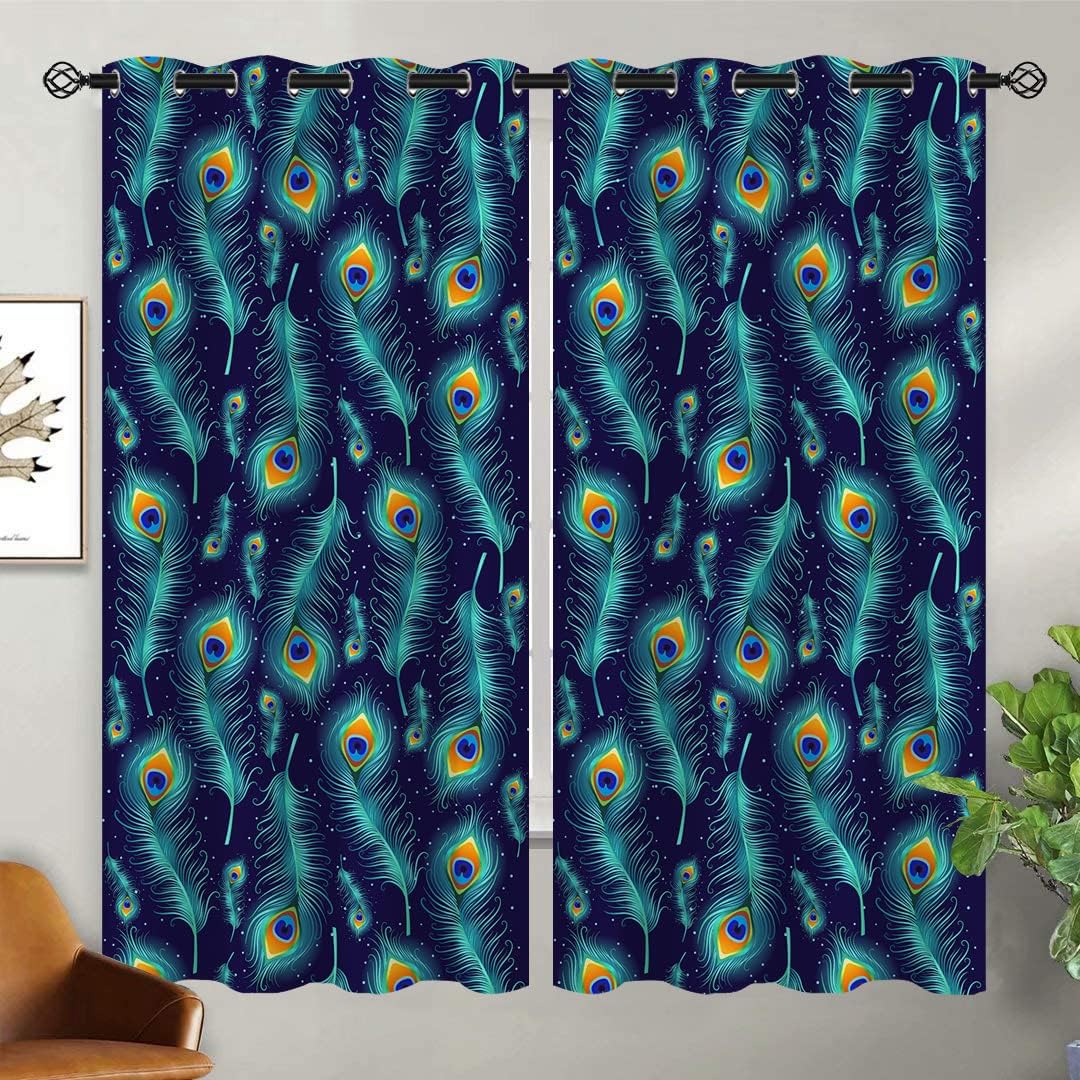 These print curtains are perfect for Living room, bedroom, kids room, kitchen, yard, patio, parlor, sliding door with Peacock Feather, Watercolor Teal Blue Abstract Art pattern.- Unique design:· Save energy costs by insulating against heat and cold.· Reduce noises from busy streets and high-traffic areas.· Protect furniture from sun damage and fading.· Provides complete privacy when needed· Perfect for any bedroom, office kids room and living room.- Package Included:· Blackout window curtains 2 Pcs set ( two panels).- Material:· Our Blackout Curtain Liners are crafted from a Long lasting soft and thick triple weaved blackout fabric which can block out sunlight and UV rays. The darker color of the fabric, the more light it can block.- Easy Care Instructions:· Machine washable in cold water· Do not bleach.· tumble dry on low· low temperature ironing- Notes:· For your curtains to be more perfect, please choose a size 5-10 Inch larger than the actual window width.· here may be slight differences in colors on different displays.