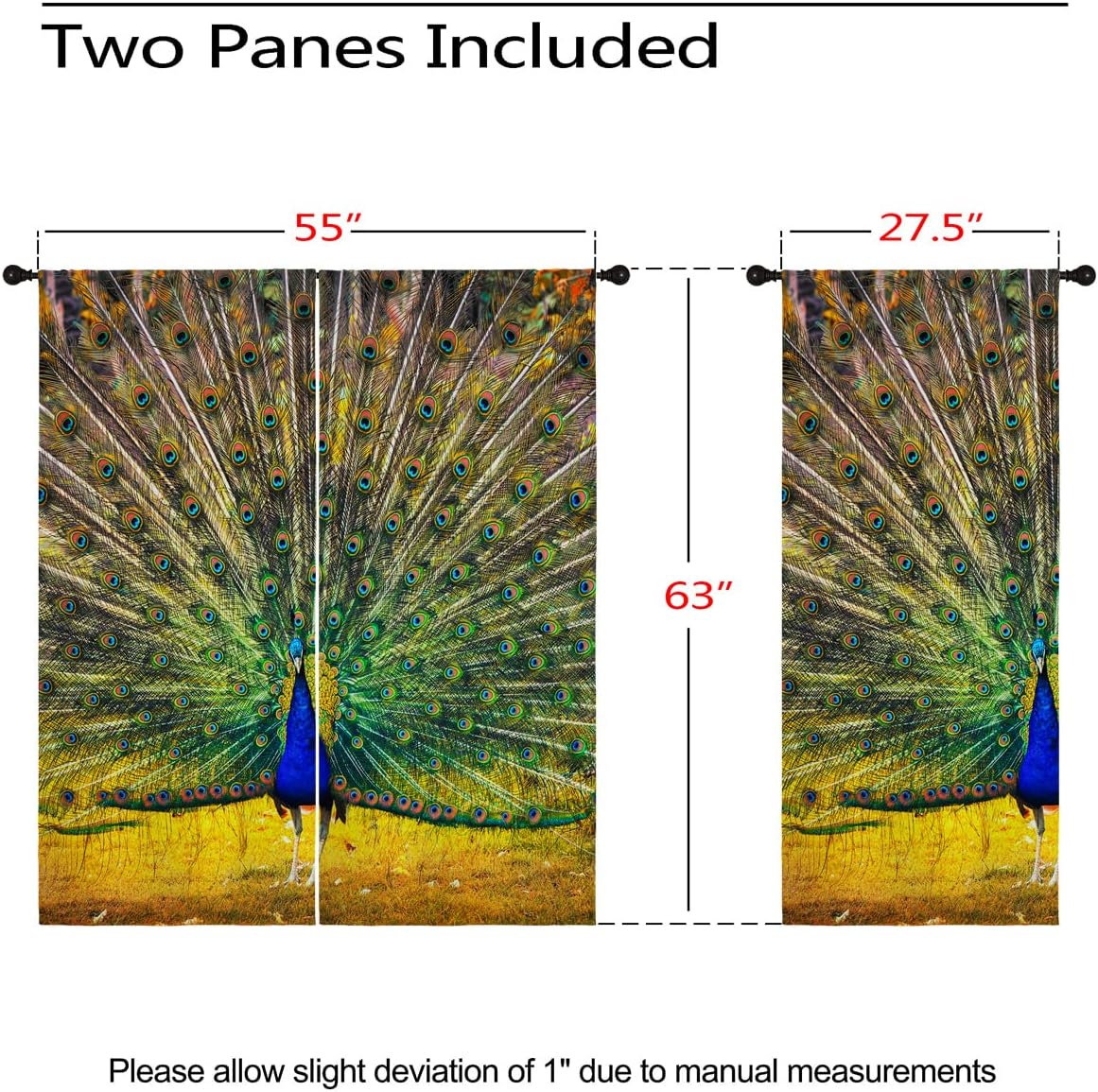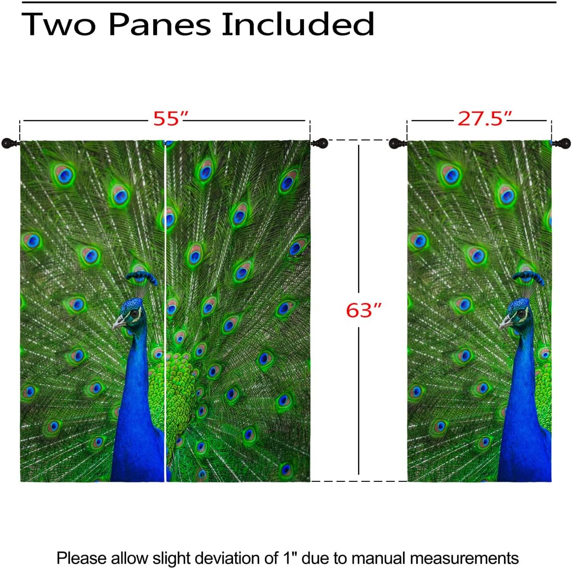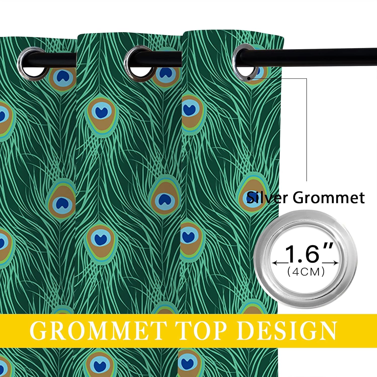 These print curtains are perfect for Living room, bedroom, kids room, kitchen, yard, patio, parlor, sliding door with Peacock Feather, Watercolor Teal Blue Abstract Art pattern.- Unique design:· Save energy costs by insulating against heat and cold.· Reduce noises from busy streets and high-traffic areas.· Protect furniture from sun damage and fading.· Provides complete privacy when needed· Perfect for any bedroom, office kids room and living room.- Package Included:· Blackout window curtains 2 Pcs set ( two panels).- Material:· Our Blackout Curtain Liners are crafted from a Long lasting soft and thick triple weaved blackout fabric which can block out sunlight and UV rays. The darker color of the fabric, the more light it can block.- Easy Care Instructions:· Machine washable in cold water· Do not bleach.· tumble dry on low· low temperature ironing- Notes:· For your curtains to be more perfect, please choose a size 5-10 Inch larger than the actual window width.· here may be slight differences in colors on different displays.