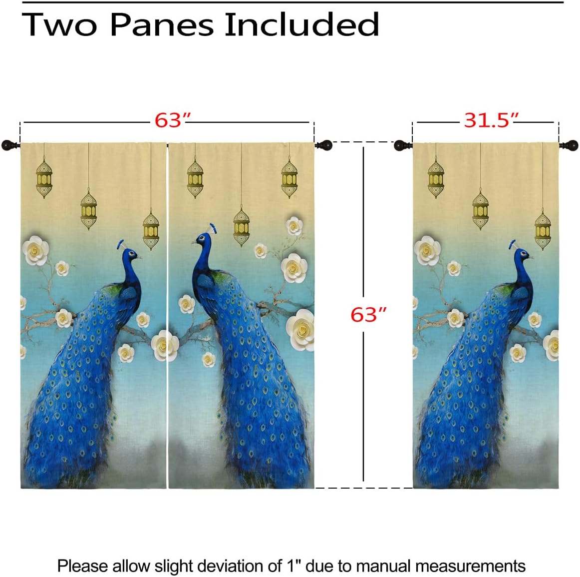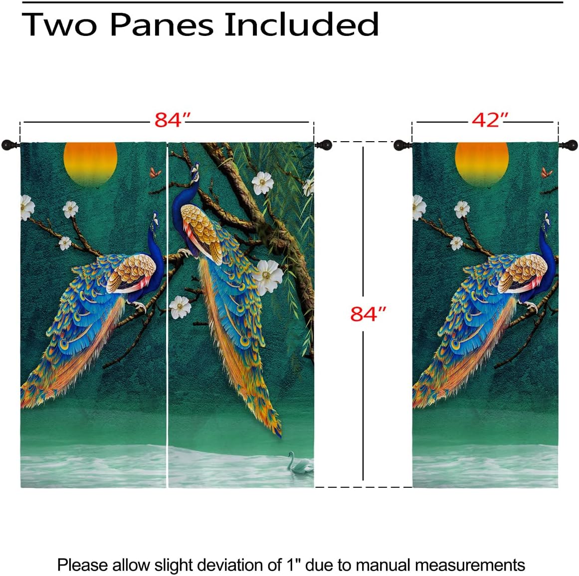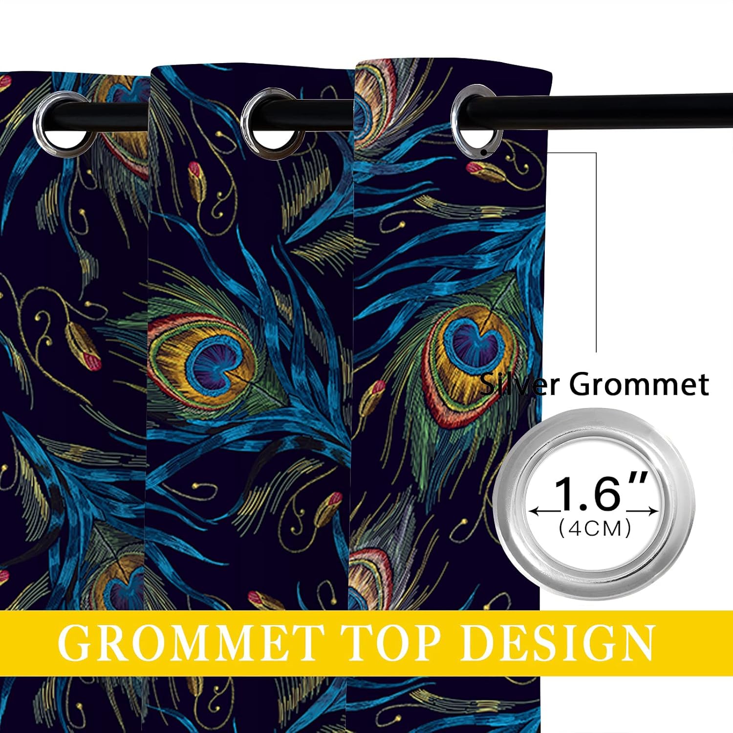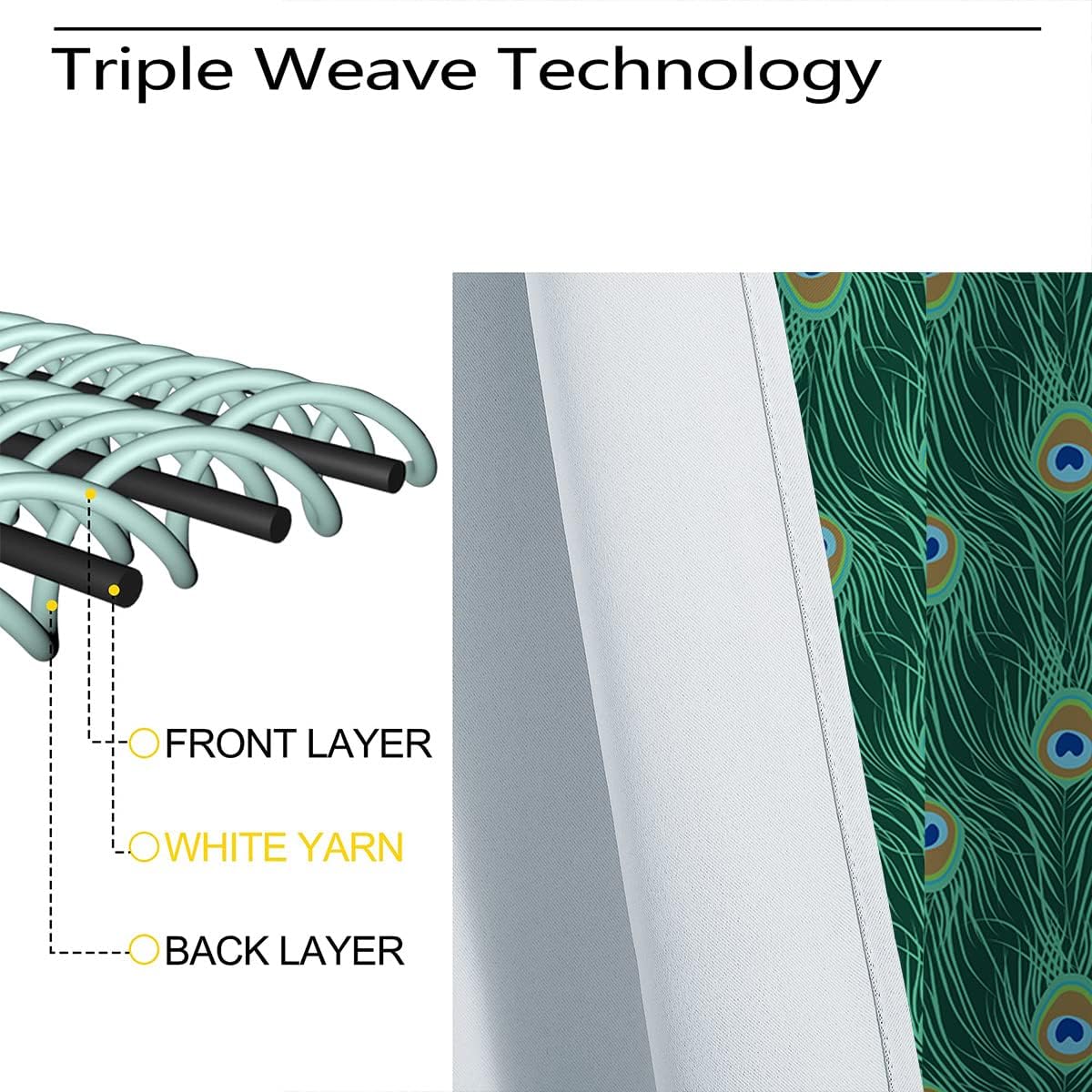 These print curtains are perfect for Living room, bedroom, kids room, kitchen, yard, patio, parlor, sliding door with Peacock Feather, Watercolor Teal Blue Abstract Art pattern.- Unique design:· Save energy costs by insulating against heat and cold.· Reduce noises from busy streets and high-traffic areas.· Protect furniture from sun damage and fading.· Provides complete privacy when needed· Perfect for any bedroom, office kids room and living room.- Package Included:· Blackout window curtains 2 Pcs set ( two panels).- Material:· Our Blackout Curtain Liners are crafted from a Long lasting soft and thick triple weaved blackout fabric which can block out sunlight and UV rays. The darker color of the fabric, the more light it can block.- Easy Care Instructions:· Machine washable in cold water· Do not bleach.· tumble dry on low· low temperature ironing- Notes:· For your curtains to be more perfect, please choose a size 5-10 Inch larger than the actual window width.· here may be slight differences in colors on different displays.