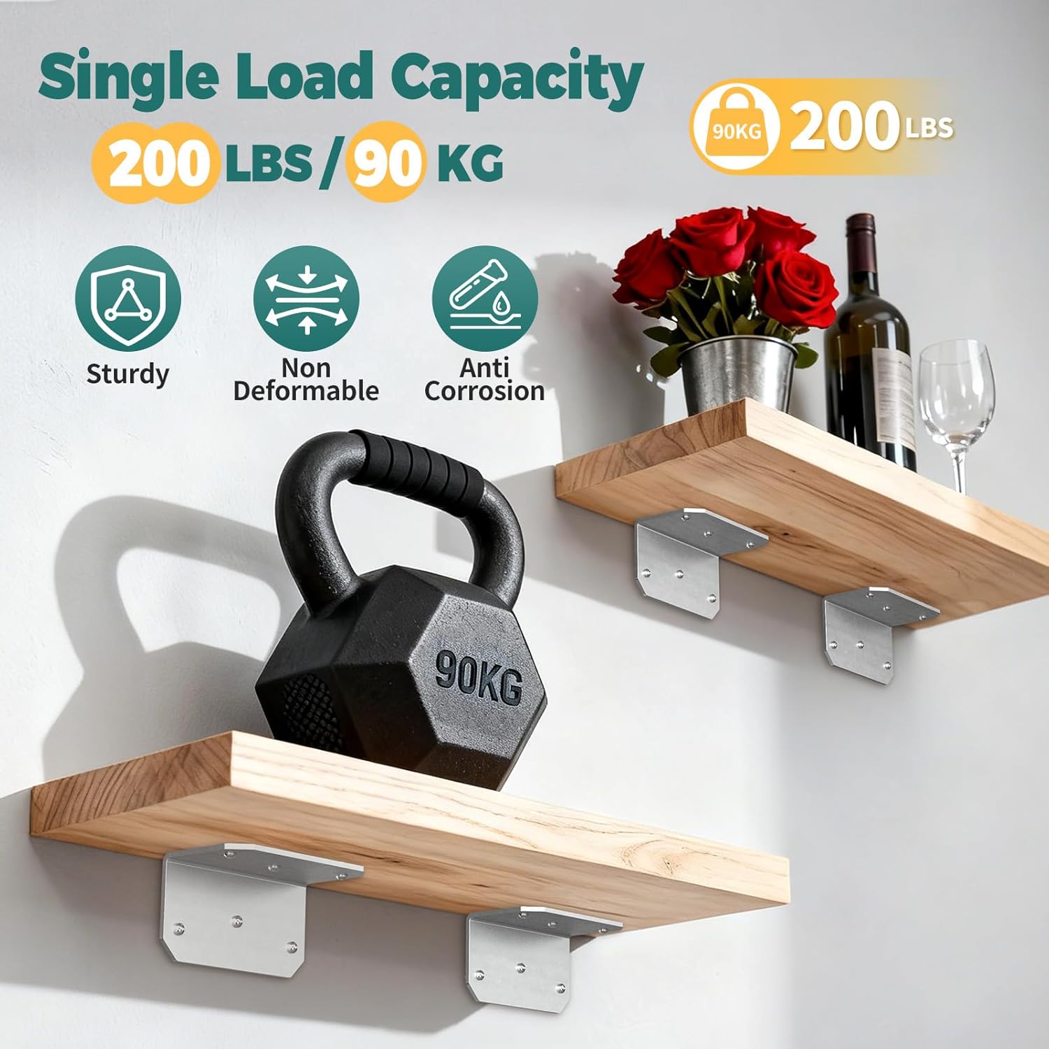 YogePote 4"×2"×2" Galvanized L Bracket, 90 Degree Corner Brace for Wood, Heavy Duty Angle Bracket for Floating Shelves, Furniture, Wood Beams, Fence, Table, Bookshelf, Cabinet, Deck