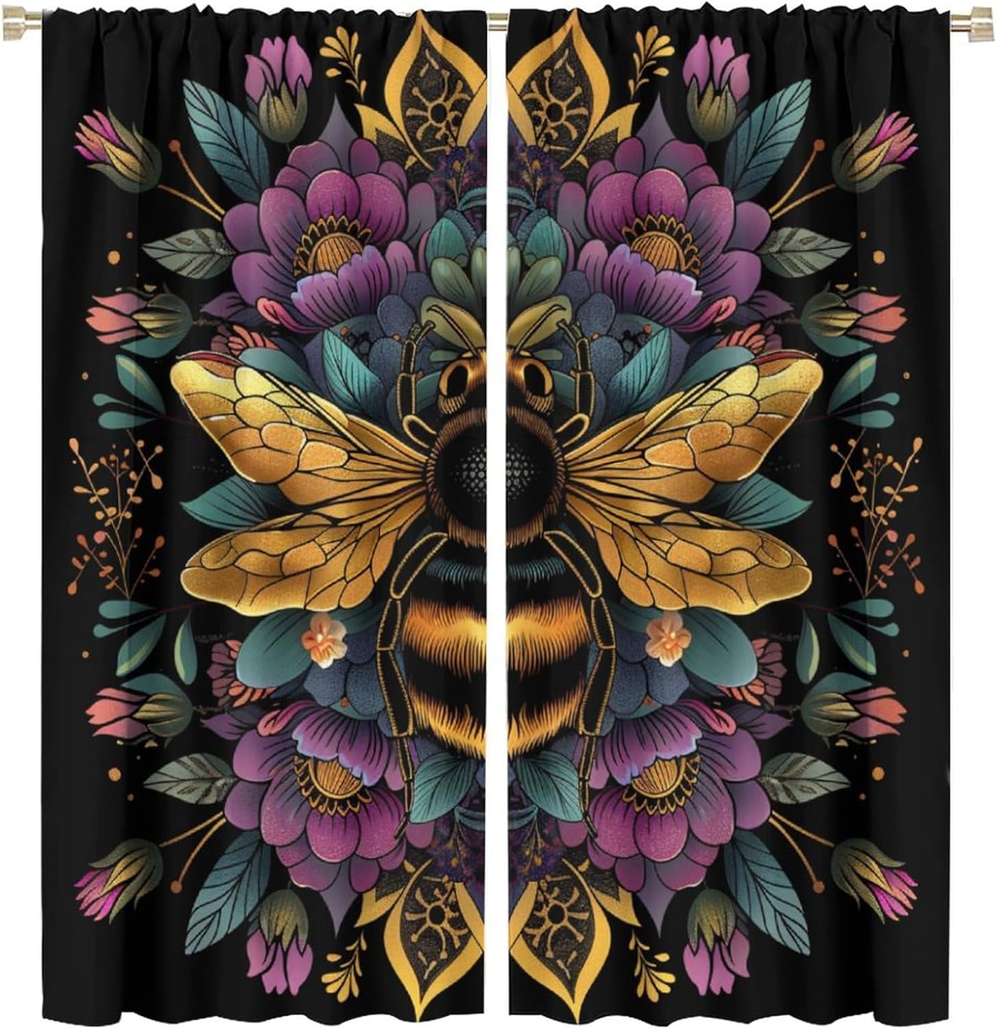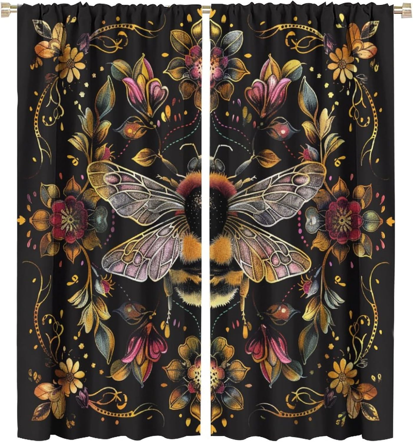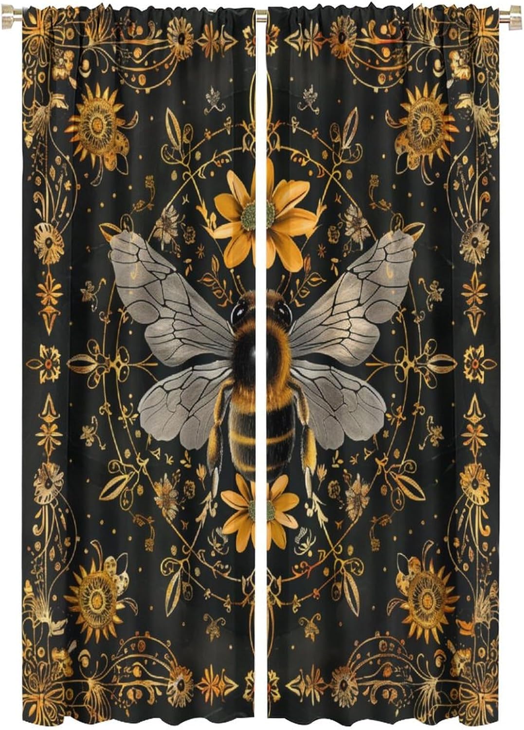 Welcome to our store.Yellow Floral Bee curtains is the beautiful choice for bedroom.The design is versatile and can blend with various home decor styles.Good and Healthy materialOur curtains are made of safe polyester fabric. Total size: 45" L × 42" W (114cm × 107cm),Includes two pieces, each of which measures:45" length × 21" width (114cm × 53.5cm).Total size: 54" L × 42" W (137cm × 107cm),Includes two pieces, each of which measures:54" length × 21" width (68.5cm × 53.5cm).Total size: 63" L × 42" W (160cm × 107cm),Includes two pieces, each of which measures:63" length × 21" width (160cm × 53.5cm).Total size: 63" L × 55" W (160cm × 140cm),Includes two pieces, each of which measures:63" length × 27.5" width (160cm × 70cm). Total size: 63" L × 63" W (160cm × 160cm),Includes two pieces, each of which measures:63" length × 31.5" width (160cm × 80cm). Total size: 72" L × 63" W (183cm × 160cm),Includes two pieces, each of which measures:72" length × 31.5" width (183cm × 80cm). Total size: 63" L × 72" W (160cm × 183cm),Includes two pieces, each of which measures:63" length × 36" width (160cm × 91.5cm).Total size: 84" L × 84" W (214cm × 214cm),Includes two pieces, each of which measures:84" length × 42" width (214cm × 107cm).Our curtains are perfect for Late sleepers, Shift workers, Seniors, Infants, Students, Computer operators and many more.Kindly Remind:- Don't use sharp things scratching curtains.- For proper fullness panels should measure 1.5-2 times the width of your window.- As different computers display colors differently, the color of the actual item may vary slightly from the above images.