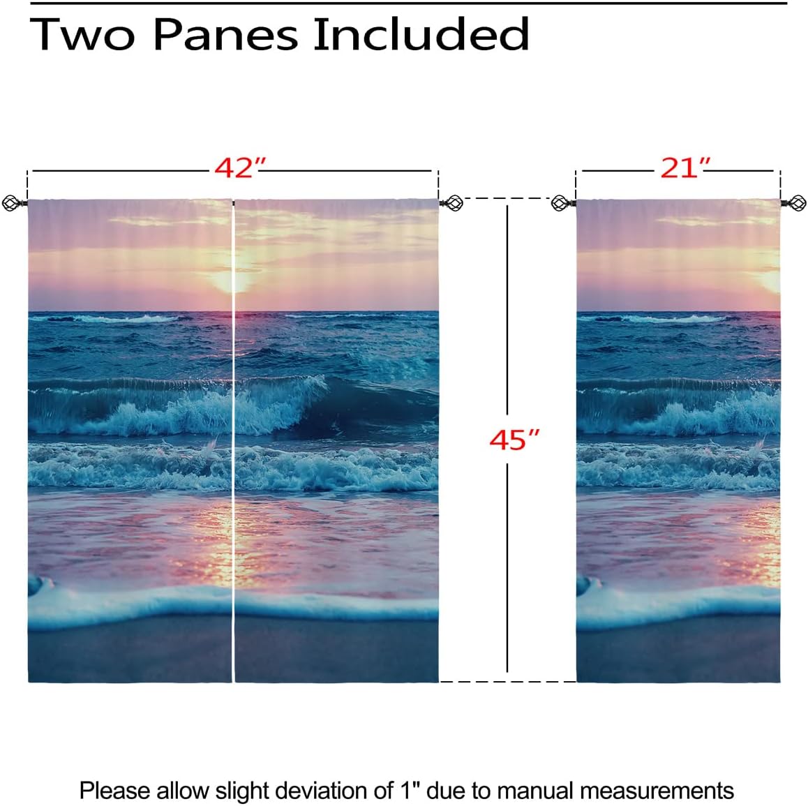 These print curtains are perfect for Living room, bedroom, kids room, kitchen, yard, patio, parlor, sliding door with Beach, Tropical Hawaii Sunrise Sea Waves Seaside pattern.- Unique design:· Save energy costs by insulating against heat and cold.· Reduce noises from busy streets and high-traffic areas.· Protect furniture from sun damage and fading.· Provides complete privacy when needed· Perfect for any bedroom, office kids room and living room.- Package Included:· Blackout window curtains 2 Pcs set ( two panels).- Material:· Our Blackout Curtain Liners are crafted from a Long lasting soft and thick triple weaved blackout fabric which can block out sunlight and UV rays. The darker color of the fabric, the more light it can block.- Easy Care Instructions:· Machine washable in cold water· Do not bleach.· tumble dry on low· low temperature ironing- Notes:· For your curtains to be more perfect, please choose a size 5-10 Inch larger than the actual window width.· here may be slight differences in colors on different displays.