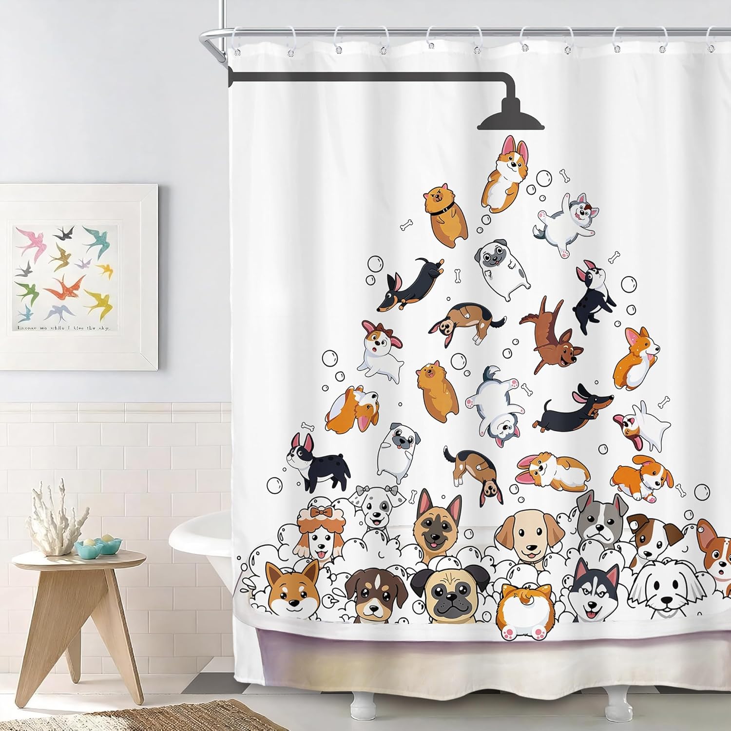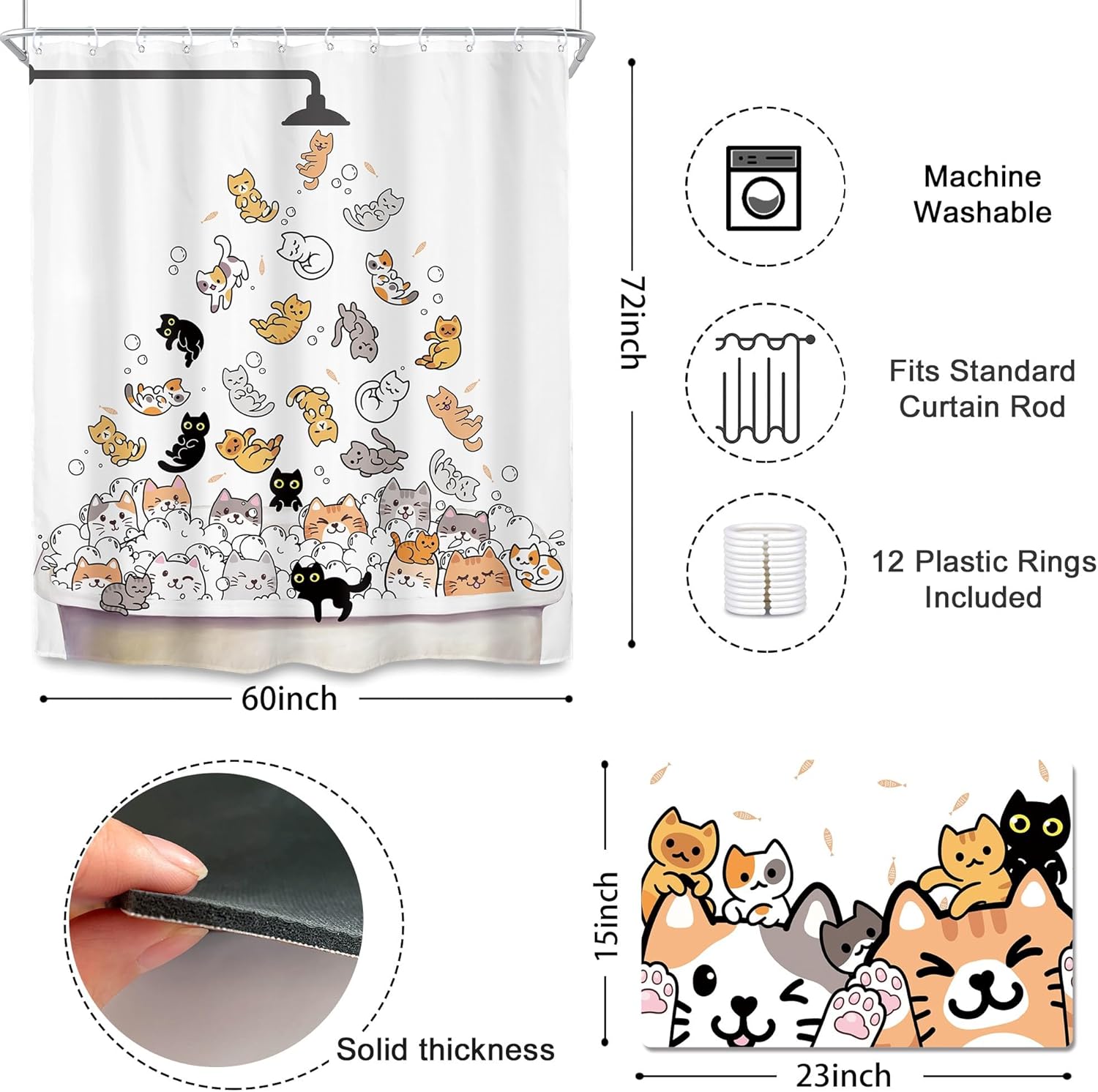 Made of polyester fiber and features soft and stylish, will keep your bathroom clean, dry and beautiful. This 2-piece rug set designed to fit most bathroom and features a washable anti slip rubber backing. Machine wash cold with mild detergent. Do not bleach or dry clean. Tumble dry low or lay flat to dry. Material: 100% polyester fabric, very soft and comfortable. Includes: 1 Shower Curtain with 12 Pack Hooks(Plastic), 1 Bath Mat Dimensions: Shower Curtain: 60''x72''(2PC), Bath Mat: 23.5" (L) x 15.5" (W). Function: Skid resistant backing, solid and keeps the bath rug in place, and will not hurt your floor surface. Easy Care: Machine washable, gentle cycle only, dry naturally.