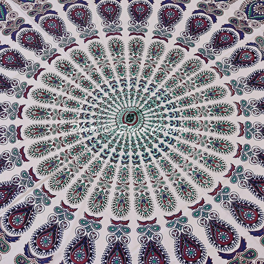 The roundie is a beautiful and awesome beach throw blanket which is perfect to take to the park or the beach. Our roundies are great for the beach as beach blankets, towels or wraps, or for the home as table cloths, sofa throws or wall tapestries. Indulge in one of our soft screen printed cotton roundies. The ultimate accessory for days at the pool parties or beach, or just lounging in your back yard, this round tapestry features a mandala design that is colorful and fun. A mandala is a spiritual and ritual symbol in Indian religions, representing the universe. In common use, "mandala" has become a generic term for any diagram, chart or geometric pattern that represents the cosmos metaphysically or symbolically; a microcosm of the universe. The basic form of most mandalas is a square with four gates containing a circle with a center point. Each gate is in the general shape of a T. Mandalas often exhibit radial balance. The term appears in the Rigveda as the name of the sections of the work, but is also used in other religions and philosophies, particularly Buddhism. In various spiritual traditions, mandalas may be employed for focusing attention of practitioners and adepts, as a spiritual guidance tool, for establishing a sacred space, and as an aid to meditation and trance induction.