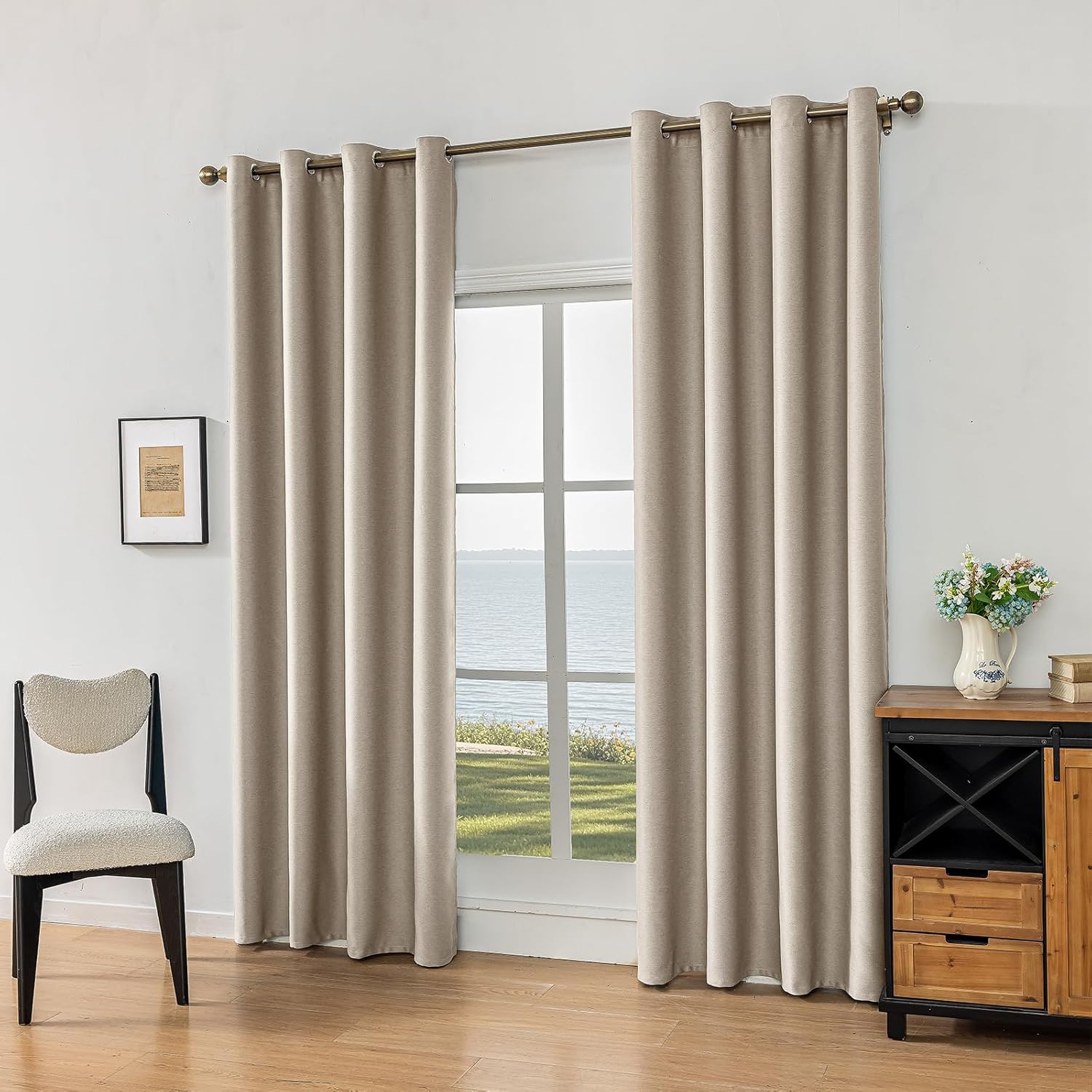 Product Features: Brand: YXHJF Package: Set of 2 Ivory linen blackout curtains. Style design:Simple and stylish 100% Linen blackout curtains for bedroom Color options:Ivory, Charcoal Gray, Dark Navy Blue,Camel Material: 100% Linen Textured Dimension:Dimensions - 52 inches (W) x 63 inches (L) Weight: 0.46kgs Easy to care: Machine washable in gentle cycle and cold water, do not bleach. Warm iron and tumble dry at low temperatures. Upgrade your home with these premium linen blackout curtains designed for comfort, functionality, and style. Made from 100% linen and featuring the latest in sewing technology,these curtains block up to 98% of sunlight and UV rays, creating the perfect environment for a restful night's sleep, an afternoon nap, or evening entertainment. The thick fabric not only enhances privacy but also reduces outside noise, making your space quieter and more serene. The versatile design features 6 silver metal grommets (1.6-inch inner diameter) for easy installation and smooth sliding, compatible with most standard curtain rods. Available in multiple colors and sizes, these curtains are ideal for beudrooms, living rooms, nurseries, studies, and dining areas, adding a touch of elegance to any space.It makes an ideal gift for you, your friends and family. Maintenance is effortless—simply machine wash in cold water on a gentle cycle and tumble dry at low temperatures. The chemical-free fabric ensures longevity and safety for your family. Whether you're looking to improve sleep quality, reduce energy costs, or enhance your home's aesthetics, YXHJF's bedroom blackout curtains are the perfect choice.