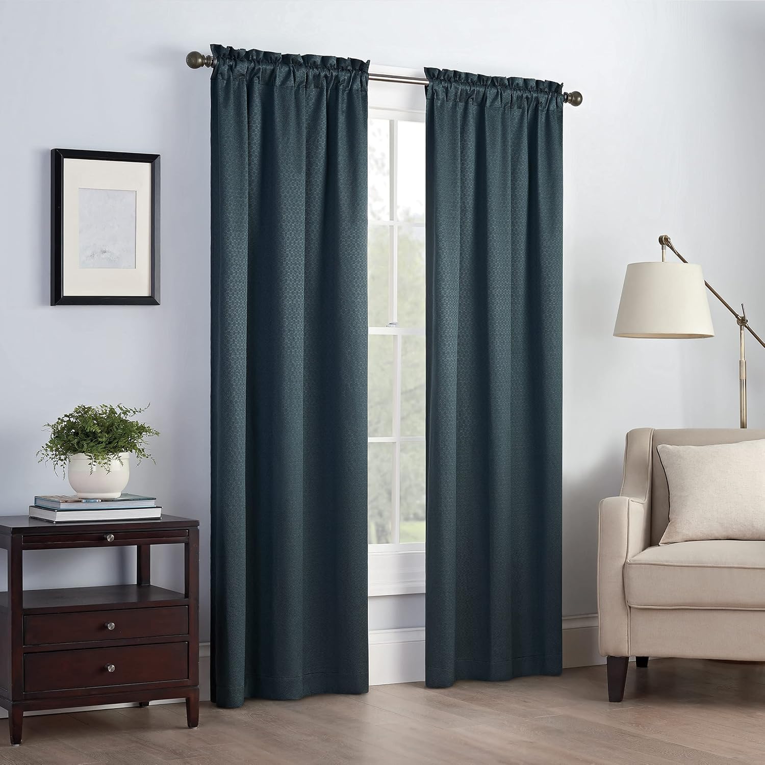 Experience the darkness, silence, and beauty of Eclipse curtains. Eclipse ultra-fashionable blackout panels have been laboratory-tested to block out over 99% of outside light and reduce unwanted noise for a better night's sleep. The innovative design of these curtains also makes them energy-efficient by helping to conserve heat and keeping unwanted cold air out, without comprising your style. Whether you are looking to enhance your existing decor or going for a complete room makeover, Eclipse curtains give you the versatility and style you need to decorate any room in your home. Hang them in your living room for better TV viewing or in the nursery or kid's room to keep out unwanted noise and light. Use two window panels on a standard or decorative rod for optimal coverage. Rods sold separately. 100% Polyester. Machine wash, tumble dry, do not bleach. Imported.