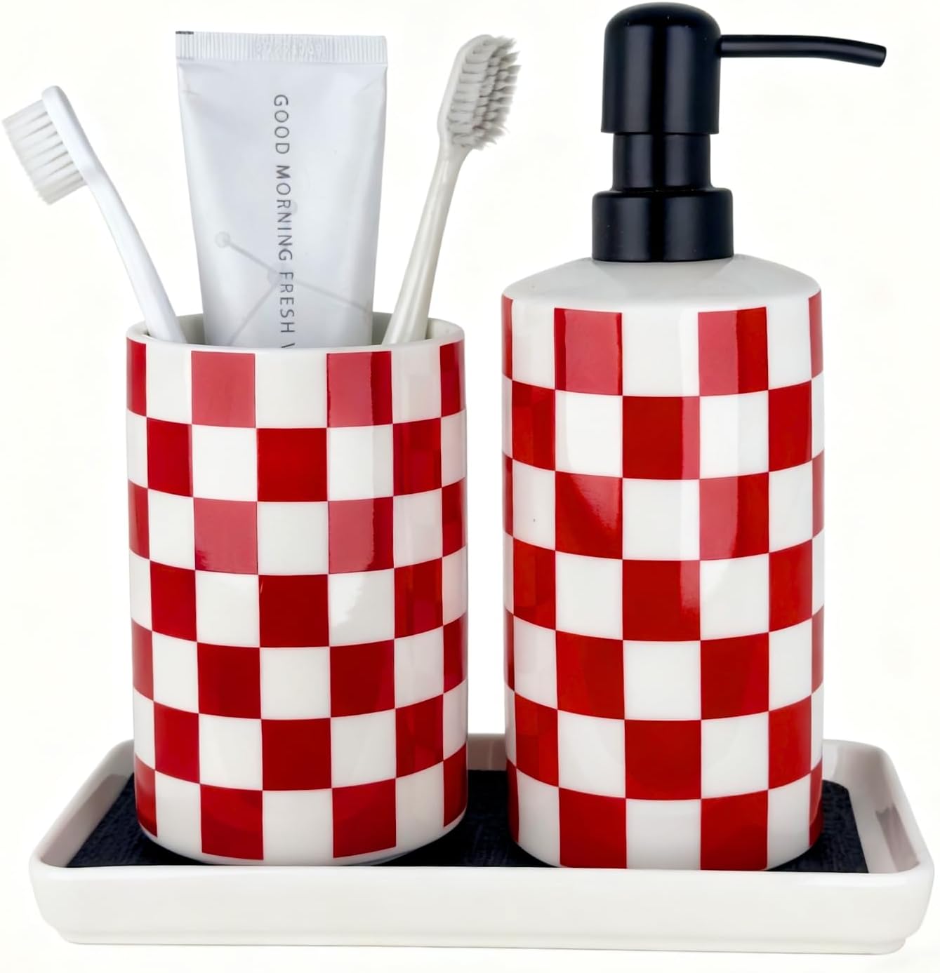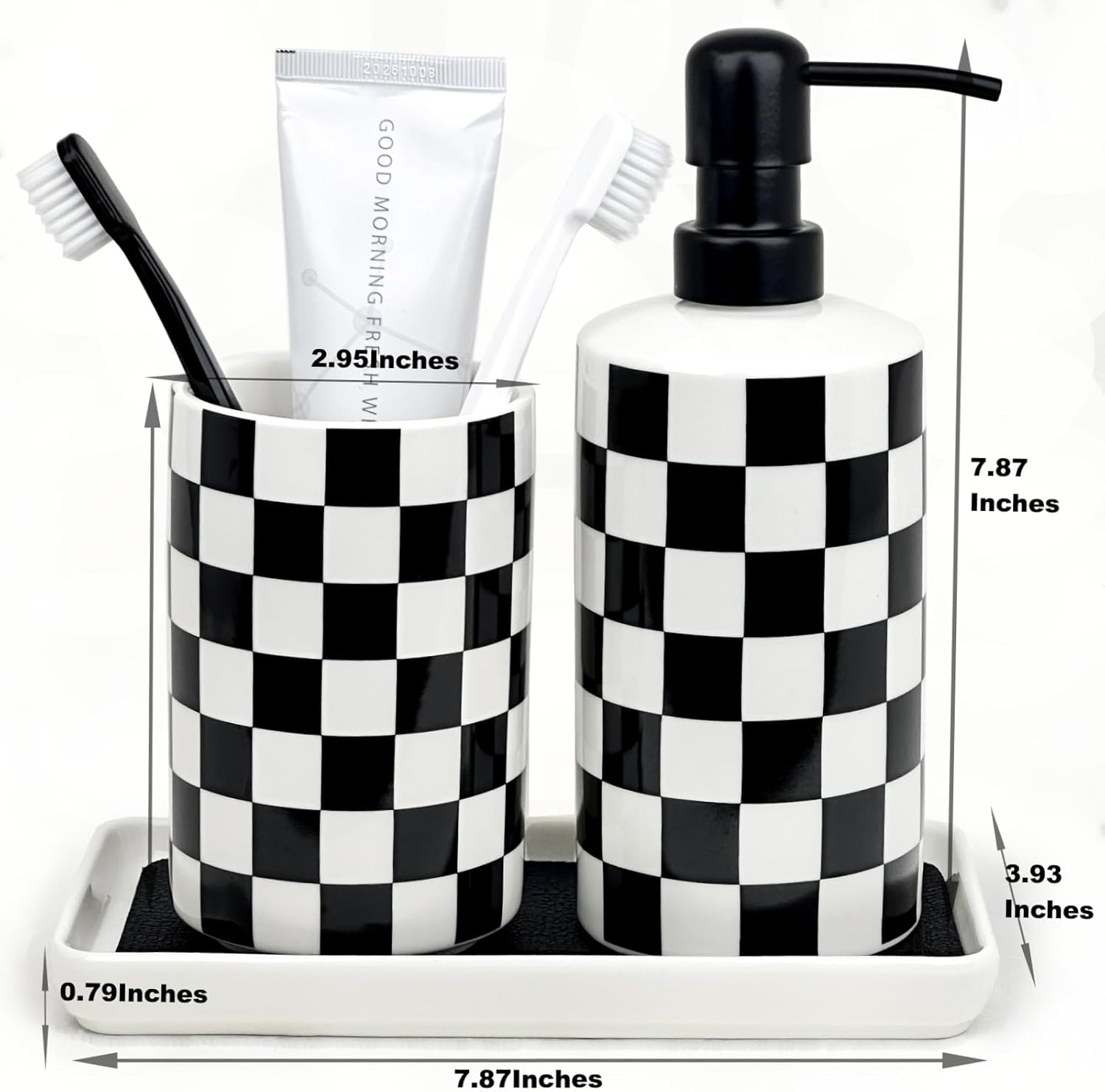 NAKOR HOME Black and White Checkered Bathroom Accessories set, Modern Cute Small Tooth brush Holders set