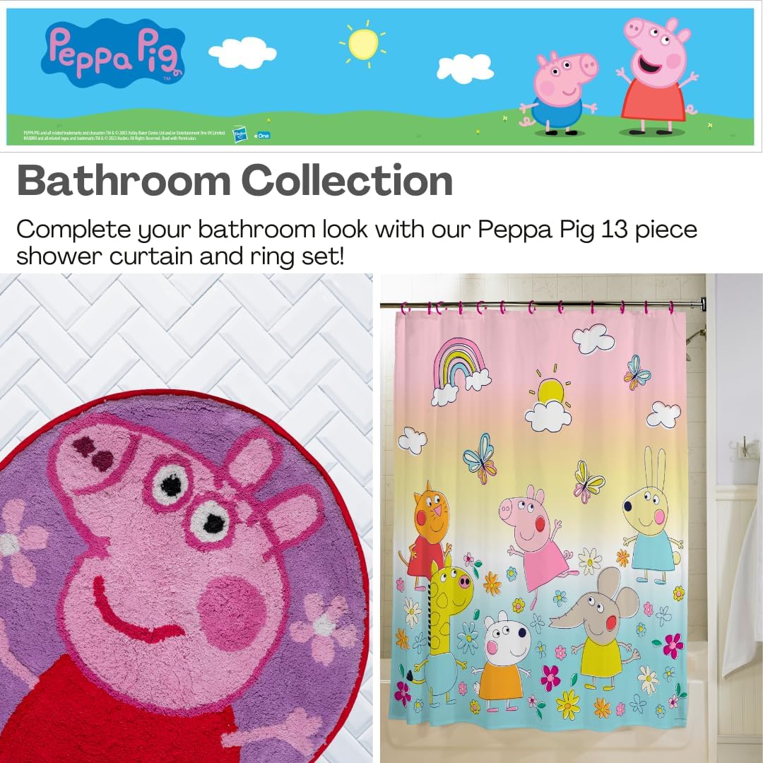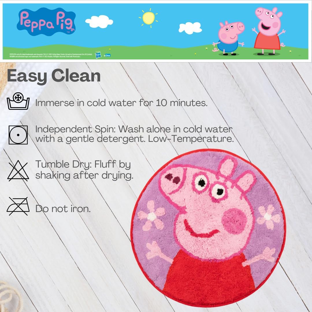 Elevate your bathroom with the delightful charm of our Peppa Pig Cotton Round Mat, featuring the lovable Peppa's face. This officially licensed rug is crafted from high-quality cotton, blending playful design with functionality. Experience ultimate comfort with its super soft and plush texture underfoot. Beyond its adorable aesthetics, this mat is a practical choice – machine washable for easy maintenance. The cotton material ensures durability and absorbency, keeping your bathroom stylish and dry. Make every step a joyous adventure with Peppa Pig, bringing smiles to your daily routine. The whimsical design meets high-quality materials, offering a bathroom accessory that's not only cute but also functional. Let Peppa's playful spirit infuse your space, turning every bath into a delightful experience. Step onto this cozy and officially licensed Peppa Pig Cotton Round Mat, adding a touch of character and comfort to your bathroom.