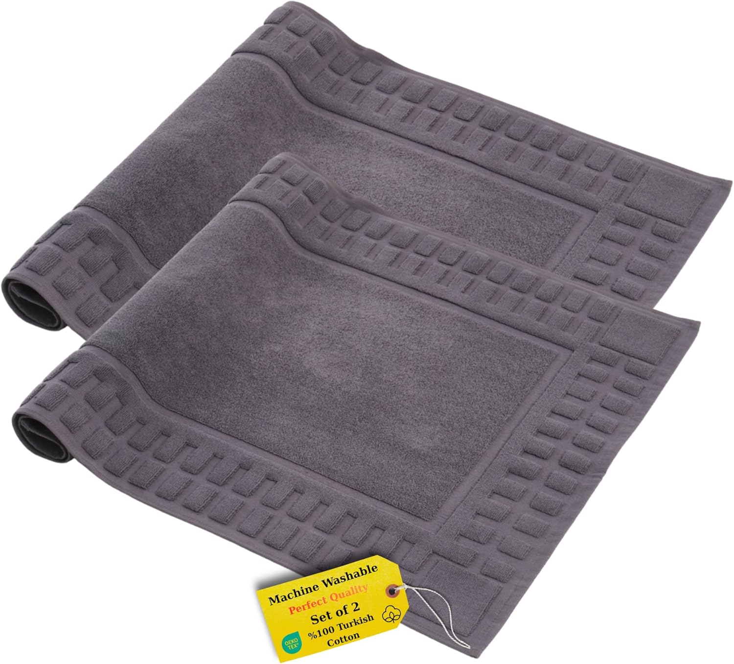 Experience luxury underfoot with our authentic Turkish Cotton Bath Mat Set. Crafted in Türkiye from premium 100% Turkish cotton, these 900 GSM ultra-plush mats deliver exceptional absorbency and comfort. Each set includes two 21x34 inch mats in exclusive Zen or Hera patterns. Unlike rubber-backed alternatives that deteriorate and trap moisture our all-cotton design promotes airflow for quick drying and freshness. The dense 900 GSM pile instantly absorbs water keeping floors dry and safe while providing spa-like cushioning. Machine washable without worry of crumbling backing these mats maintain their luxurious feel wash after wash. Perfect for bathrooms of all sizes place one by the shower and another by the sink for complete coverage. The superior Turkish cotton construction ensures long-lasting durability and softness that rivals high-end hotels. Transform your daily routine with authentic Turkish craftsmanship and quality.