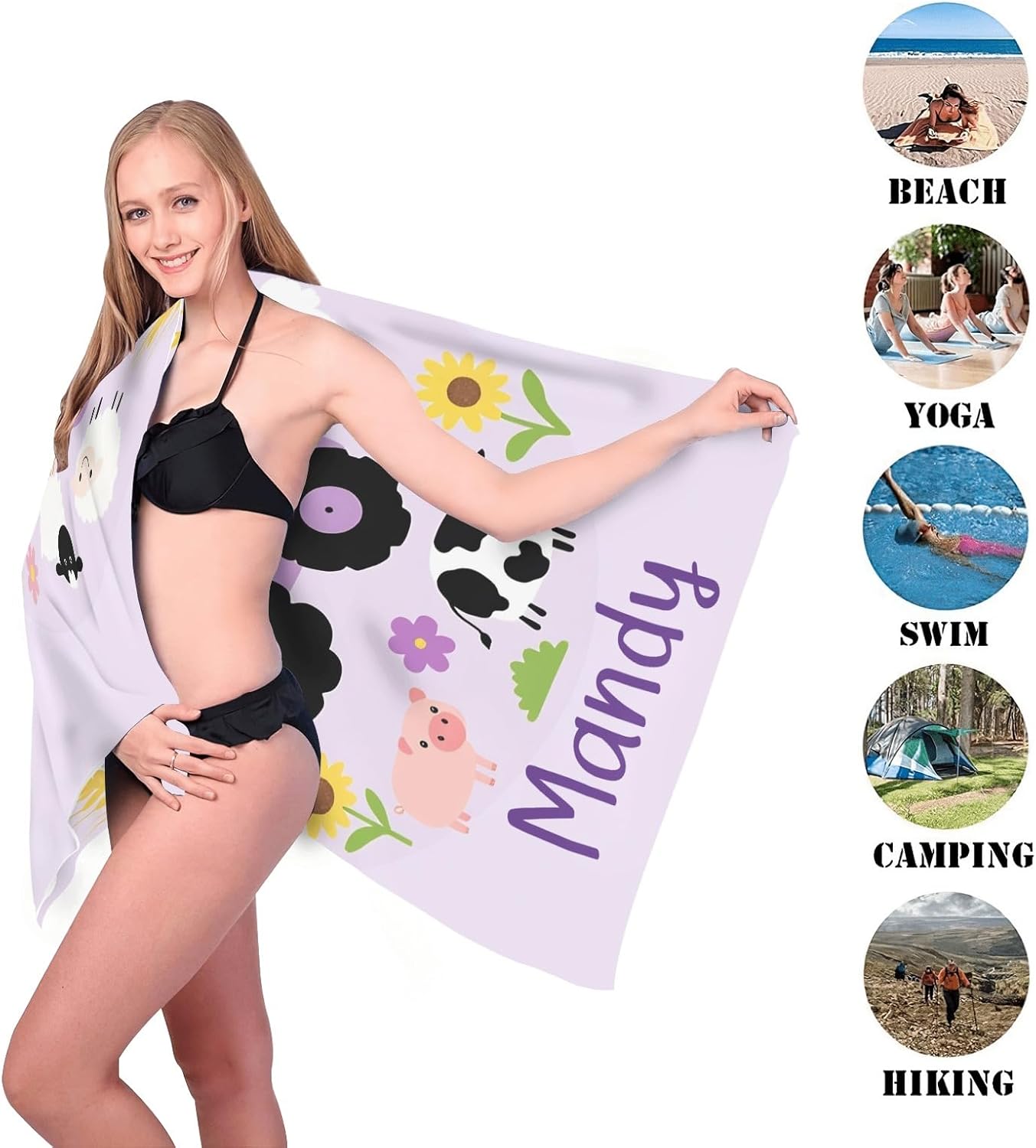 Customize Your Beach Towel:This personalized beach towel perfect for mother's day,father's day,halloween,thanksgiving,christmas,birthday gift and wedding gift.Standard Size:Our colorful beach towel measuring 30"(W) X60" (L), it does offer plenty of length to feel fully wrapped up or to cover most of a chaise lounge when you're ready to soak up the sun after a swim.High Quality:The high-quality microfiber beath towel offers exceptional absorbency, which gives your skin a dry feeling. It has special characteristics-quick dry, super absorbent, sand free, and super soft and lightweight, easy to carry with.2 Sides Printed Beach Towel:You've probably noticed that our towels have two same faces. A double-sided printing design lets you buy one and have two enjoyments.These stylish, novel, and unique printed cool beach towels will add leisure and fun to you. Show off your style with these beautiful beach towels and it will bring you ubiquitous praise! It is Super-easy to spot on a crowded beach and brighten up your beach time, and you are absolutely unique on the beach.Multi-Purpose:You can use it at beach, surf, outdoor, pool, swimming, camping, hiking, gym, yoga, sports. And our beach towels suitable for adults,men,women,kids,teens,boys and girls. Give the beautiful beach towels to your friends family member and lovers as a gift.Easy Care:Microfiber beach towel suitable for hand washing or machine washable, maximum wash temperature is 60 degrees Celsius. Please do not bleach, iron, dry clean and do not use softeners to avoid reducing absorbency. Tumble dry on low or hang dry in the air.