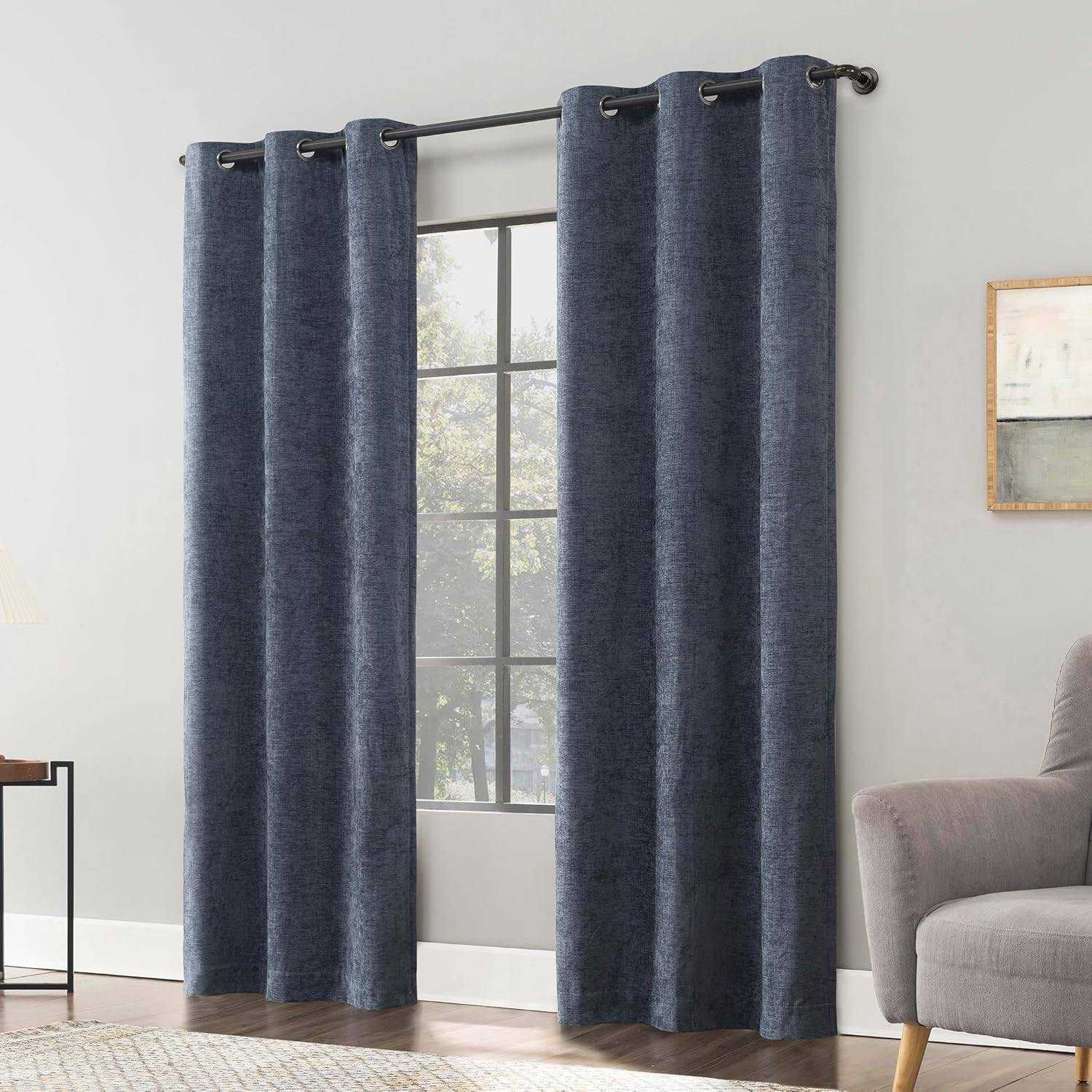 Sun Zero Isidora Velvet Magnetic Closure 100% Blackout Grommet Curtain Panels provide the ultimate in light blocking technology coupled with magnetic closures on both sides of the panel to keep out even the harshest of light while adding elegant sophistication with a decadent velvet fabric. Sun Zero Total Blackout technology is laboratory tested to block out 100% of light, reduce outside noise by up to 40%, and decrease energy lost through your windows by up to 40%. Comfort is optimized with thermal properties that help keep summer heat and winter chill out of your home. Grommet top design allows for easy slide-through installation on a curtain rod up to 1.5" in diameter. Hang in your entertainment room to eliminate screen glare and reduce distracting outside noise, or in your bedroom for enhanced privacy and a sounder, more uninterrupted sleep. Sold as individual panels measuring 40" width by 84" length in color taupe. Measure carefully before selecting your desired size and quantity. Rod not included. Machine wash cold on gentle cycle. Use non-chlorine bleach when needed. Tumble dry on low heat, do not iron.
