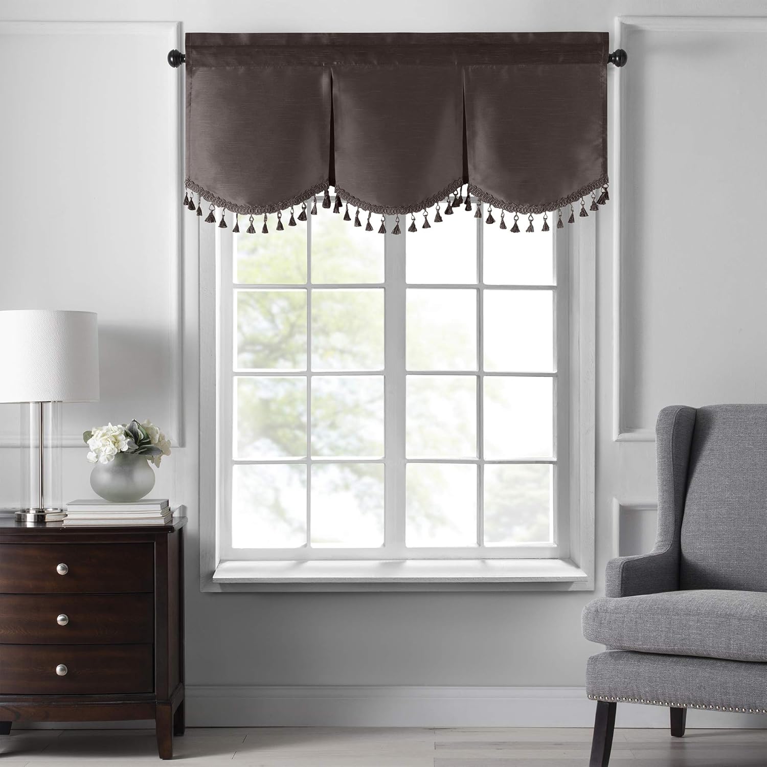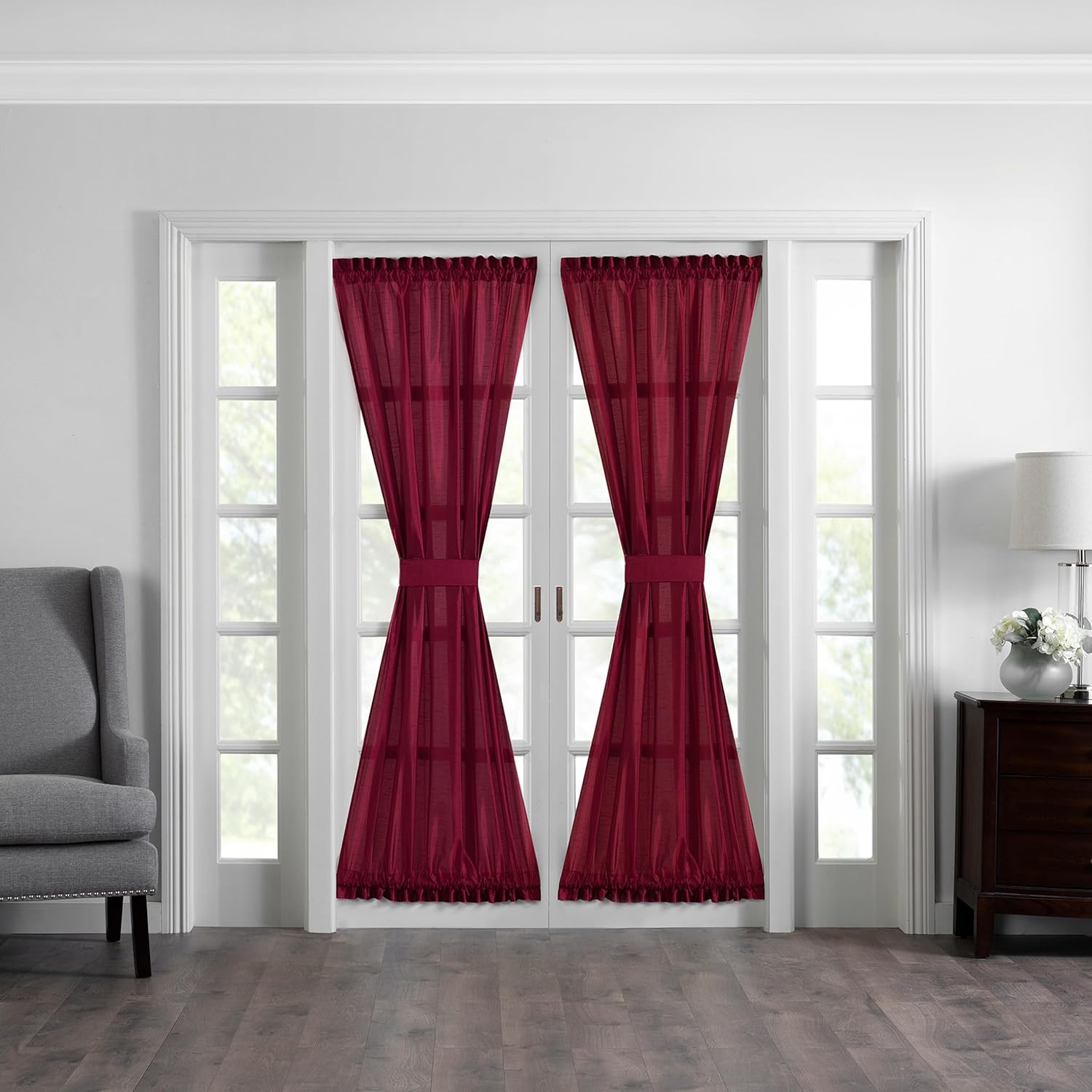 The Colette faux-silk window collection adds beauty and class to your living room, dining room, or entryway windows, and features faux-silk dupioni and a luxurious sheen and texture. Each separately sold piece, from the sidelight panel to the blackout panel, will dress up any room. Available in a variety of solid colors, these window treatments will match any home aesthetic. The classic patterns and lovely design will become the focal point of any room in your home. Each piece in this collection is made from durable 100% polyester. The sidelight curtain measures 28" W x 72" L, has 2-inch top and bottom rod pockets and a 1.5-inch decorative header, and comes with a matching tieback. The French door window panel measures 54" W x 72" L, has 2-inch top and bottom rod pockets with a 1.5-inch decorative header, and comes with a matching tieback. The blackout panel is available in multiple sizes: 52" W x 84" L, 52" W x 95" L, and 52" W x 108" L. It has a 3-inch rod pocket with a 1.5-inch decorative header. The scalloped valance measures 50" W x 21" L and has a 3-inch rod pocket with a 1.5-inch decorative header. Simply machine wash and dry each piece to keep it looking amazing.Established in 1922, Elrene Home Fashions was founded on the principles of quality and guaranteed satisfaction. With the help of our expert artists and designers, we produce high-quality, fashionable home decor for every home and decorating palate. We are 100% committed to our customers and strive to give the very best in all of our products.