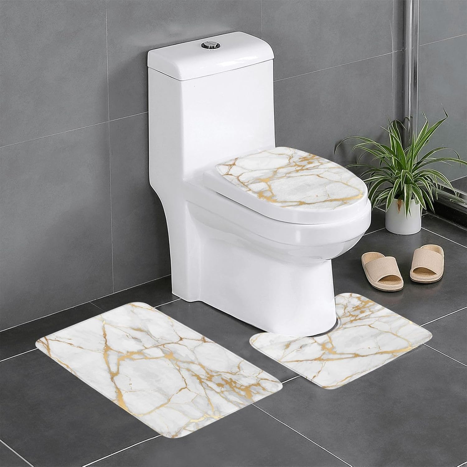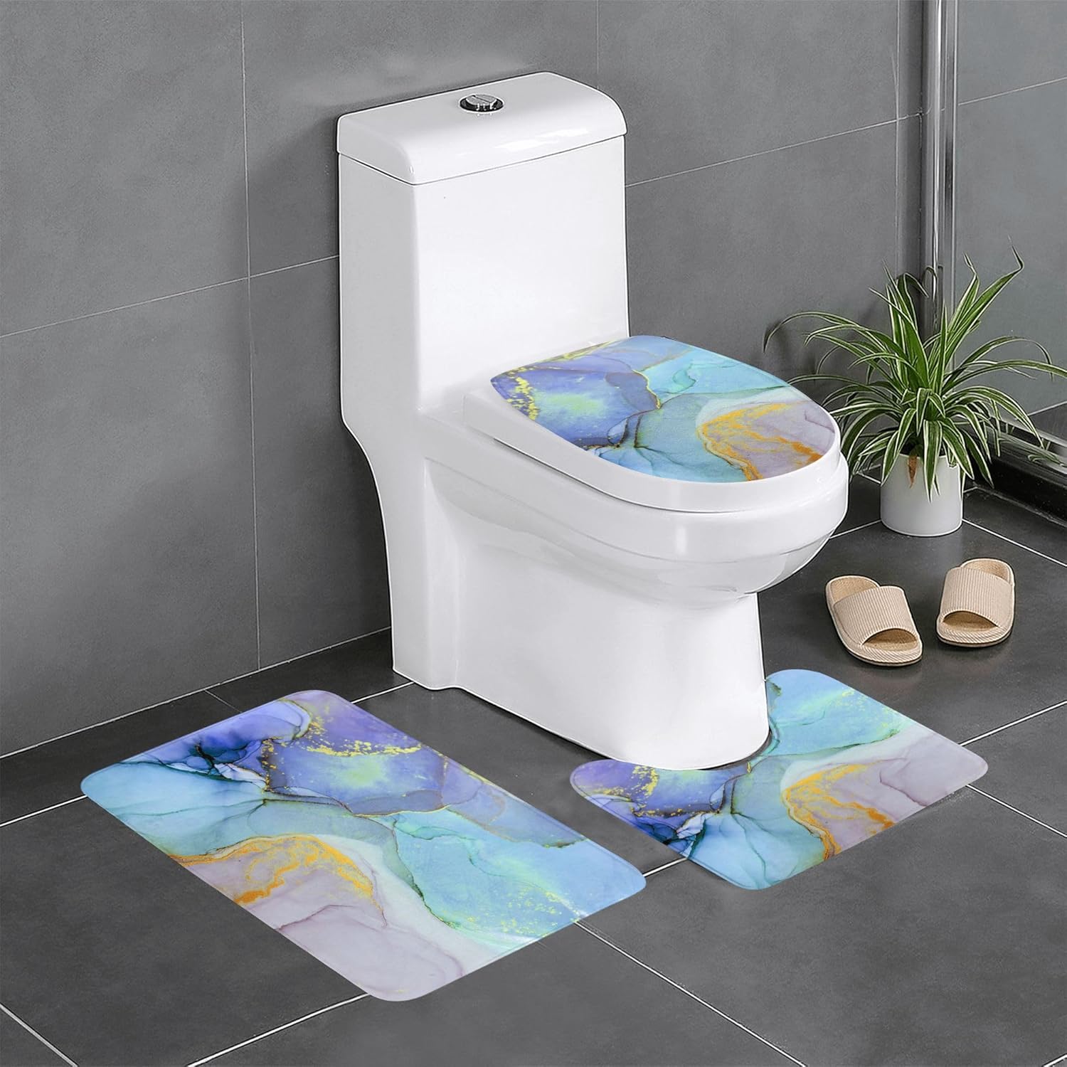Material: 100% polyester, Flannel fabric.Pattern Element: Purple marble bath mats rug.Non Slip: Bathroom rugs set of 3 is durable PVC backing which helps to prevent shifting and skidding.Wide Use: This marble bath mat sets 3 piece can be used at bathroom, Tub-side, Front of the sink, Living room, Bedroom, Laundry room, Home decoration etc; Or at any place in your home where you want to relax and warm your toes.Washing Instructions: Hand washing or machine washing. Do not use chlorine or bleach.Package Included:1 * Rectangular bath mat (15.7in x 23.8in/40cm x 60cm).1 * U pad contour mat (15.7in x 19.7in/40cm x 50cm).1 * O type toilet lid cover (13.8in x 17.7in/35cm x 45cm)Note: This lid cover rug works for round toilet ld.