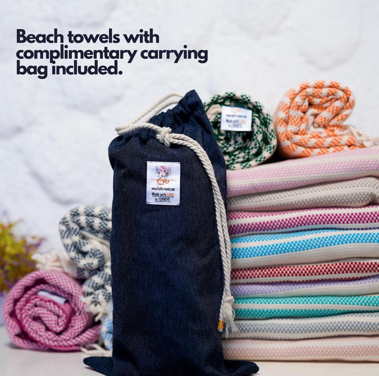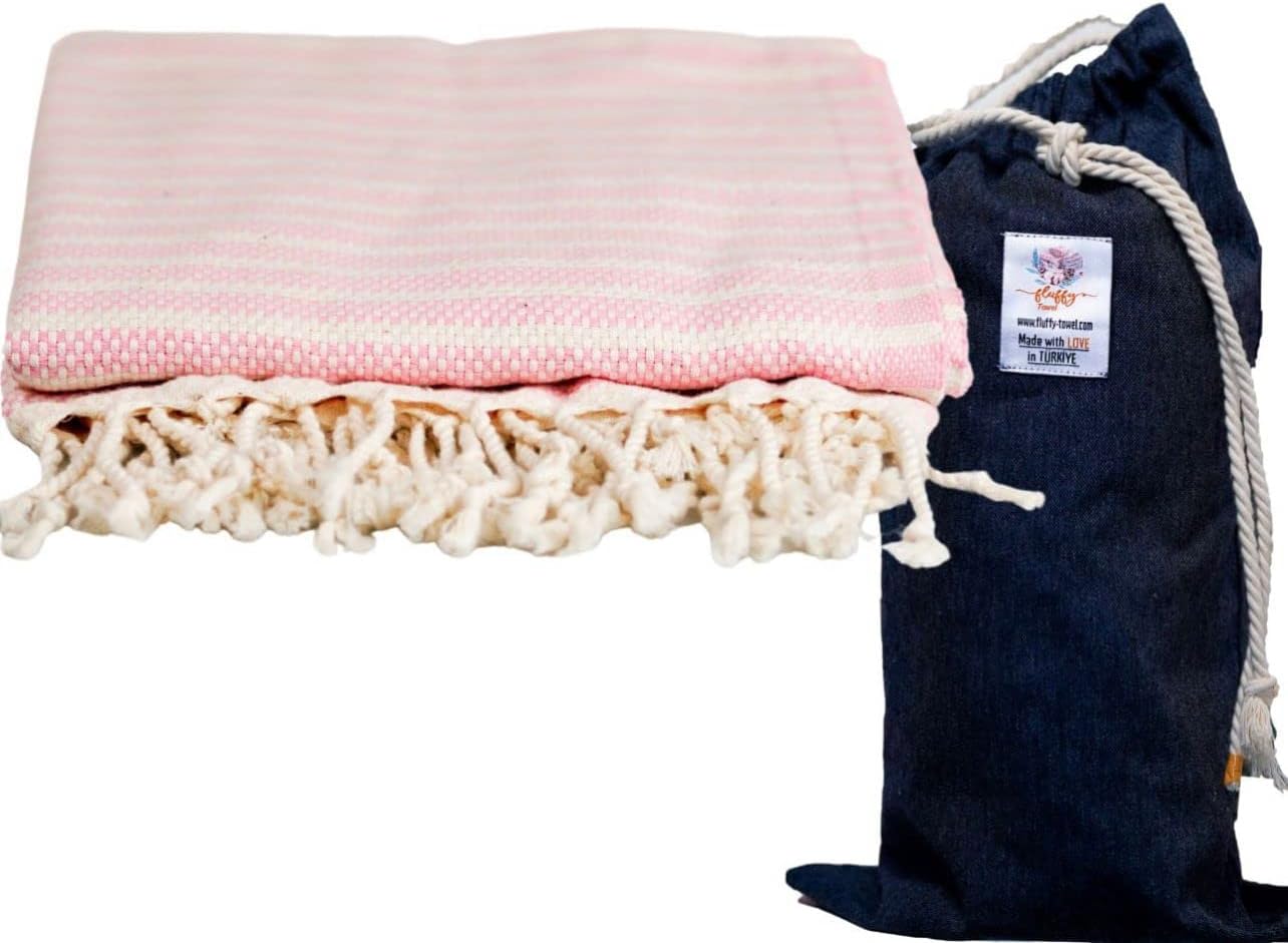 Introducing the Turkish Peshtemals, a luxurious and versatile addition to your towel collection. Made from 300 GSM Ringspun Cotton, these towels are soft, absorbent, and comfortable against the skin. They feature a tightly woven design and handcrafted fringe for added elegance and style. These towels are compact and lightweight, making them an ideal travel companion, and come in twelve color options to coordinate with your swimsuit or beach bag. A free carrying bag is included for ease of transport. Not just for the beach, these towels are versatile and can be used in many settings such as the gym, spa, yoga, camping, and even as a cover for a picnic table or sofa. They are also a great alternative to heavy bath towels or bathrobes for a lighter and refreshing option in the summer months. The towels are double-sided, with one side being a lean peshtemal and the other containing a delicate layer of terry cloth for maximum absorbency and softness. They are sand-free, perfect for use at the beach. Upgrade your towel collection with the Mediterranean Collection Peshtemals for the ultimate combination of style, comfort, and convenience.