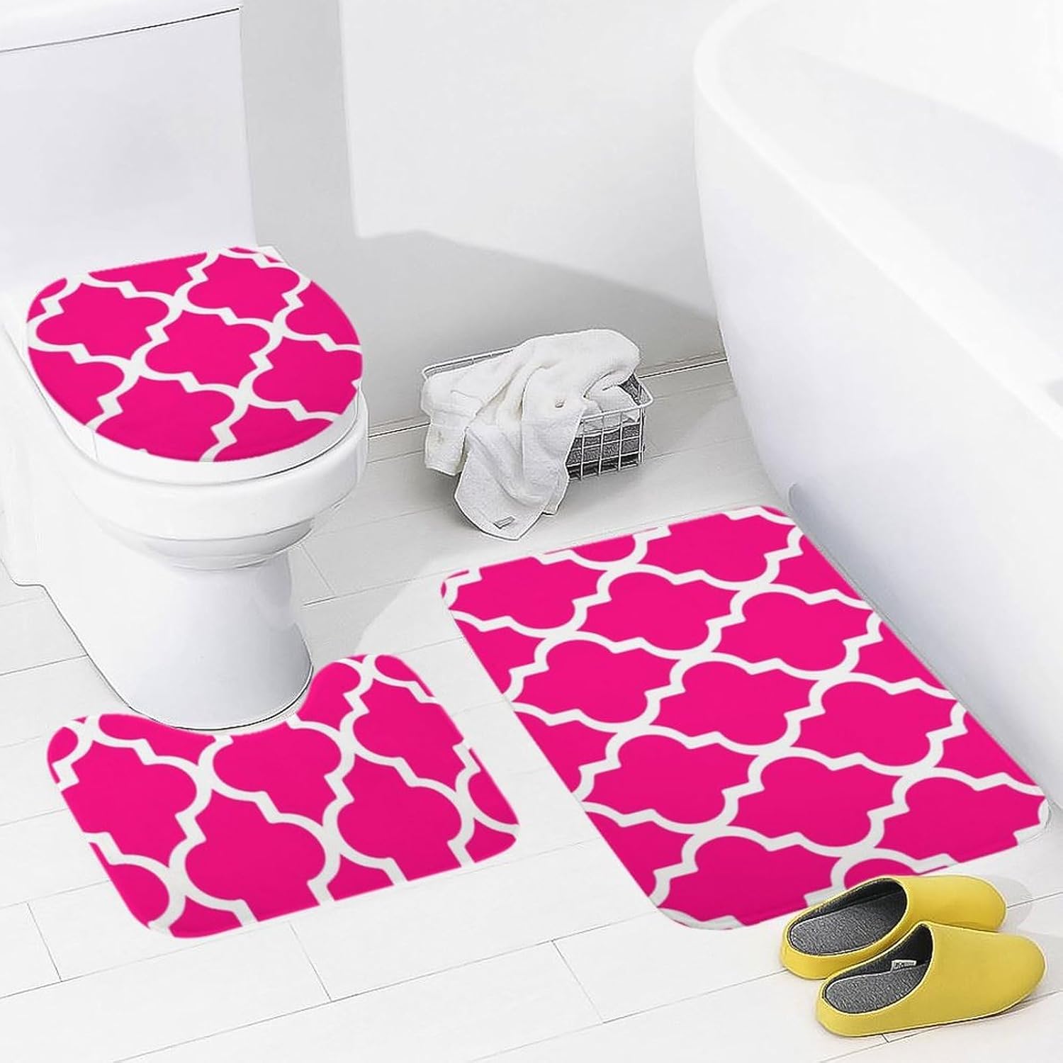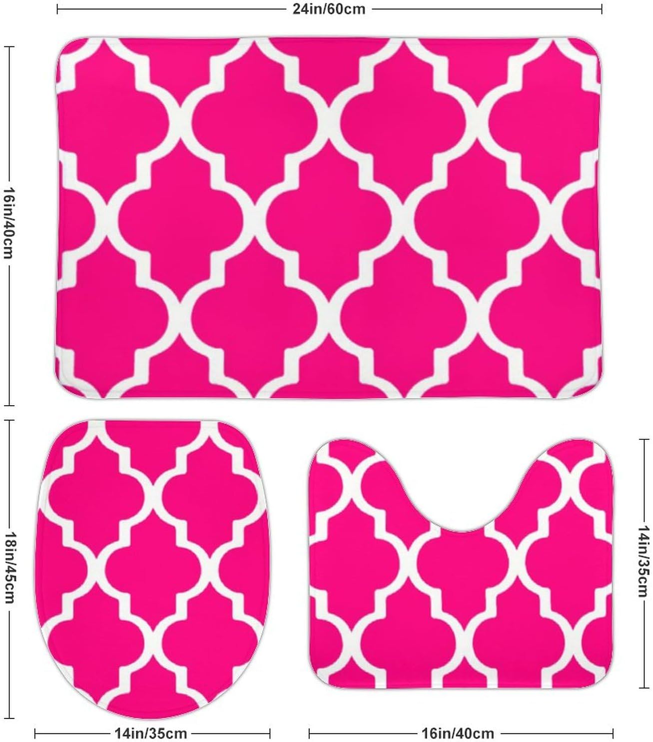 Curdesi is dedicated to providing you a better living environment with high quality and unique design.This bath mat could offer elegant decoration to your bathroom and maximum comfort after taking a shower. Advantage: ✅High-quality flannel Microfiber material, Super soft touch feeling. ✅Enjoy the comfort of standing on the clouds! Cushiony memory foam bath rug to fit and support your feet. ✅High water absorbency,make your feet dry after shower. ✅Non slip bathroom rug is constructed with strong and durable plastic dots backing which helps to prevent shifting and skidding. ✅widely used in bathrooms, bedrooms, living rooms, kitchens, corridors, laundry rooms, etc. It is also a perfect gift for family and friends. Specification: Material: Coral velvet Variety of designs 3 Pieces Set includes: -Bath Mat: 16 x 24" -Contour Mat: 16 x 14" - Toilet lid cover: 18 x 14" Warm Notice: 1.Color difference is allowed because the light and screen effects. 2.There may be a difference in product size for manual.