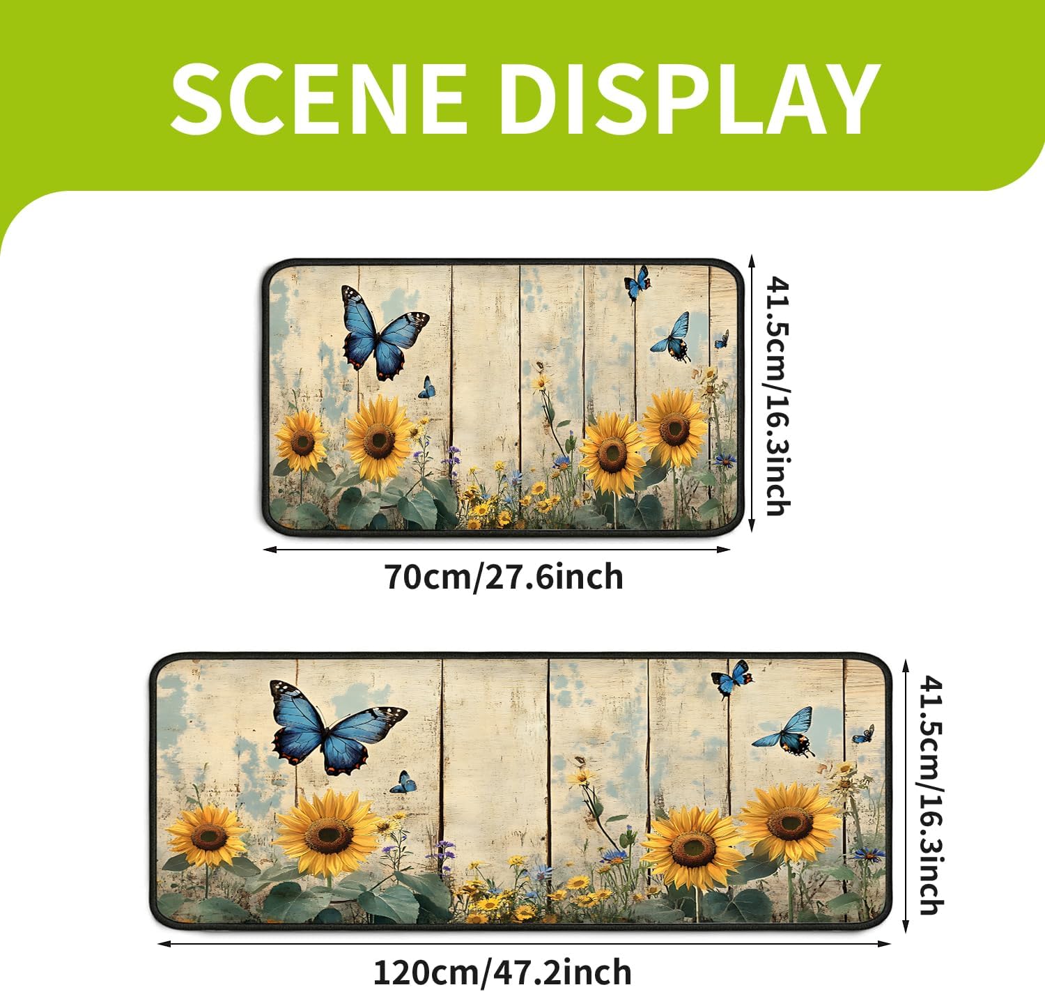 This kitchen mat set includes two sizes, 17"x47" and 17"x30", perfectly fitting various kitchen spaces. Made from high-quality materials, the mats are soft and comfortable, effectively reducing foot pressure during long periods of standing, providing a more enjoyable experience. The unique surface design is slip-resistant and durable, while also absorbing moisture to keep the floor dry and clean. Ideal for use in the dishwashing area, in front of the cooking counter, or near the refrigerator and washing machine, these kitchen rugs add both warmth and functionality to your home. With its simple, stylish design, it seamlessly complements any kitchen decor, making it an essential accessory for your kitchen.