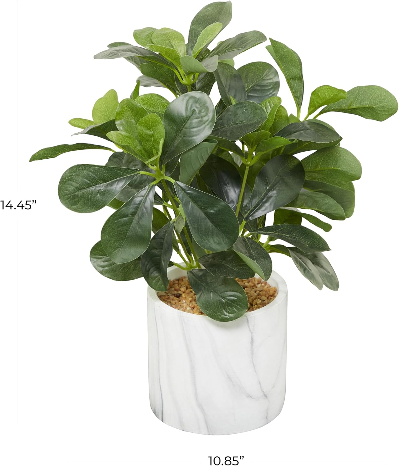 | Additional Features | Decorative potted plant features teardrop-shaped leaves enhanced with grain stone fillers and a compact-friendly marbled white pot |