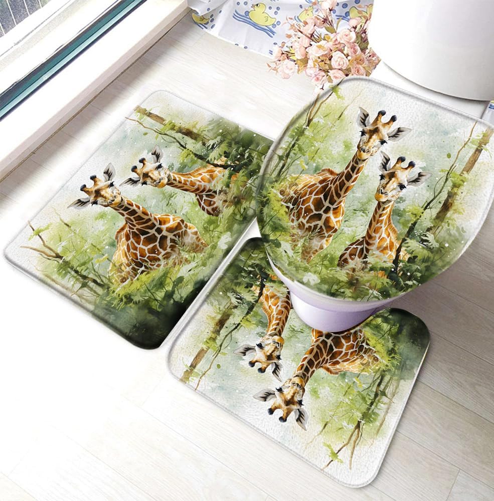 The bathroom bath mat set has a soft plush surface which is long lasting. for all surfaces, backing will not harm your flooring. With state of the art digital printing technology, various designs multiple color pictures like fields,forests,animals ,funny and all that fantastic,popular, Classic vivid colors bring you the latest home fashion,Decoration your room . A perfect gift idea for your mom, dad, sister, brother, grandma, wife, husband and all other beloved ones. It can be used in bathroom,Kitchen,living room,apartment,car, hotel,Hallway,camper.