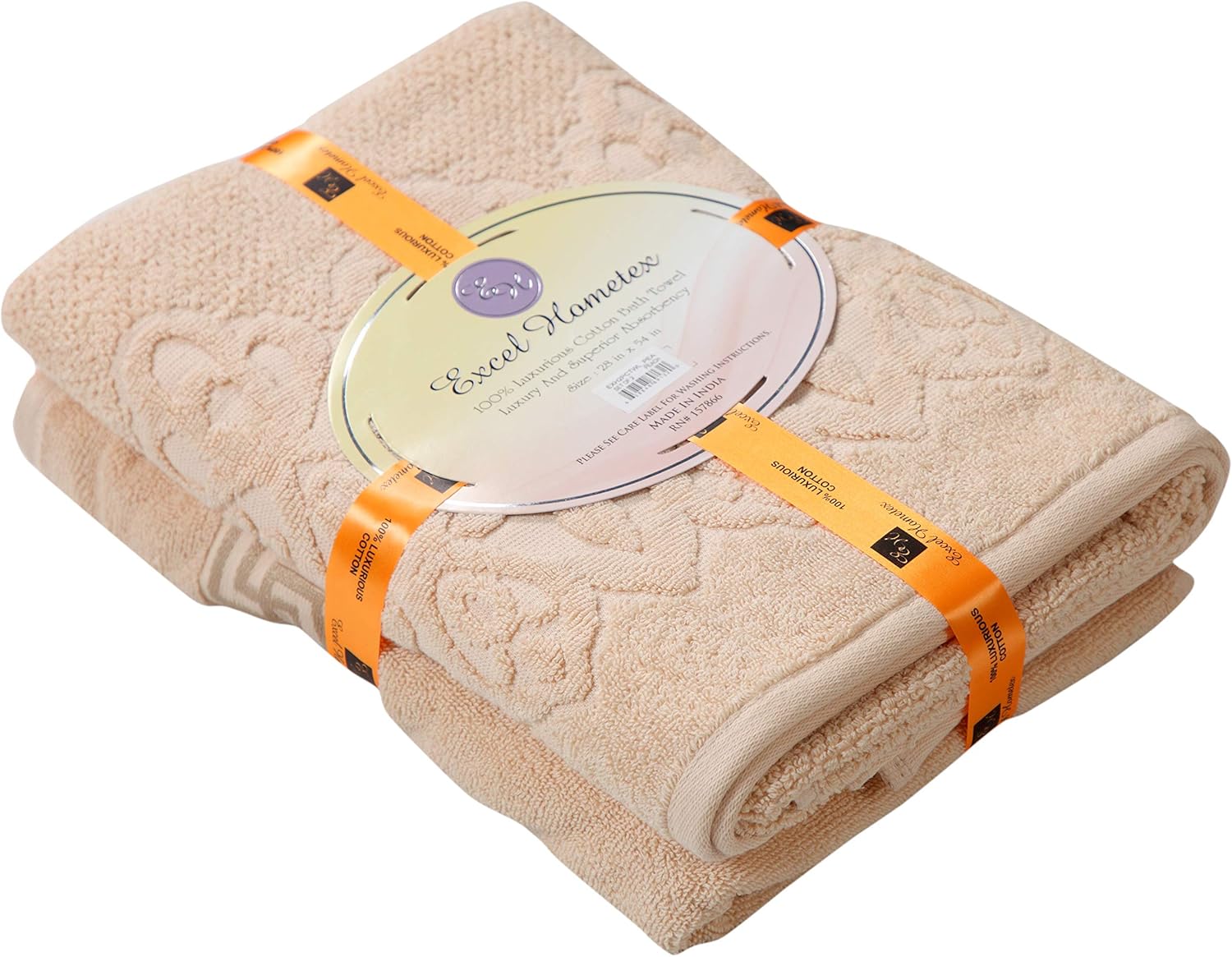 Excel Hometex Jacquard 2 PC Towel Set 100% Cotton 600 GSM 2 Bath (28" x 54") Towels Product Description: Terry Cotton : Terry Cotton is the fabric with loops ( The loop formed by the pile of a fabric ) that can absorb large amount of water. Wrap yourself in these 100% Terry cotton 2-piece Bath towel set, available in a wide variety of beautiful colors that are guaranteed to complement any decor. This Terry cotton towel set includes two machine-washable bath towels, two hand towels and two washcloths. Update personal and guest bathrooms alike with this matching towel set. This towel set provides a luxurious bathroom experience. 2-Bath Towels measure 28"x54" . Quality, comfort and luxury beyond an ordinary cotton towel Incredibly soft and durable. Perfect solution for Hotel, Spas, and homes. Reactive dye,600 grams per bath 100% Terry Cotton pile, machine wash. Available Sets Include: Set Includes: 2-bath towel