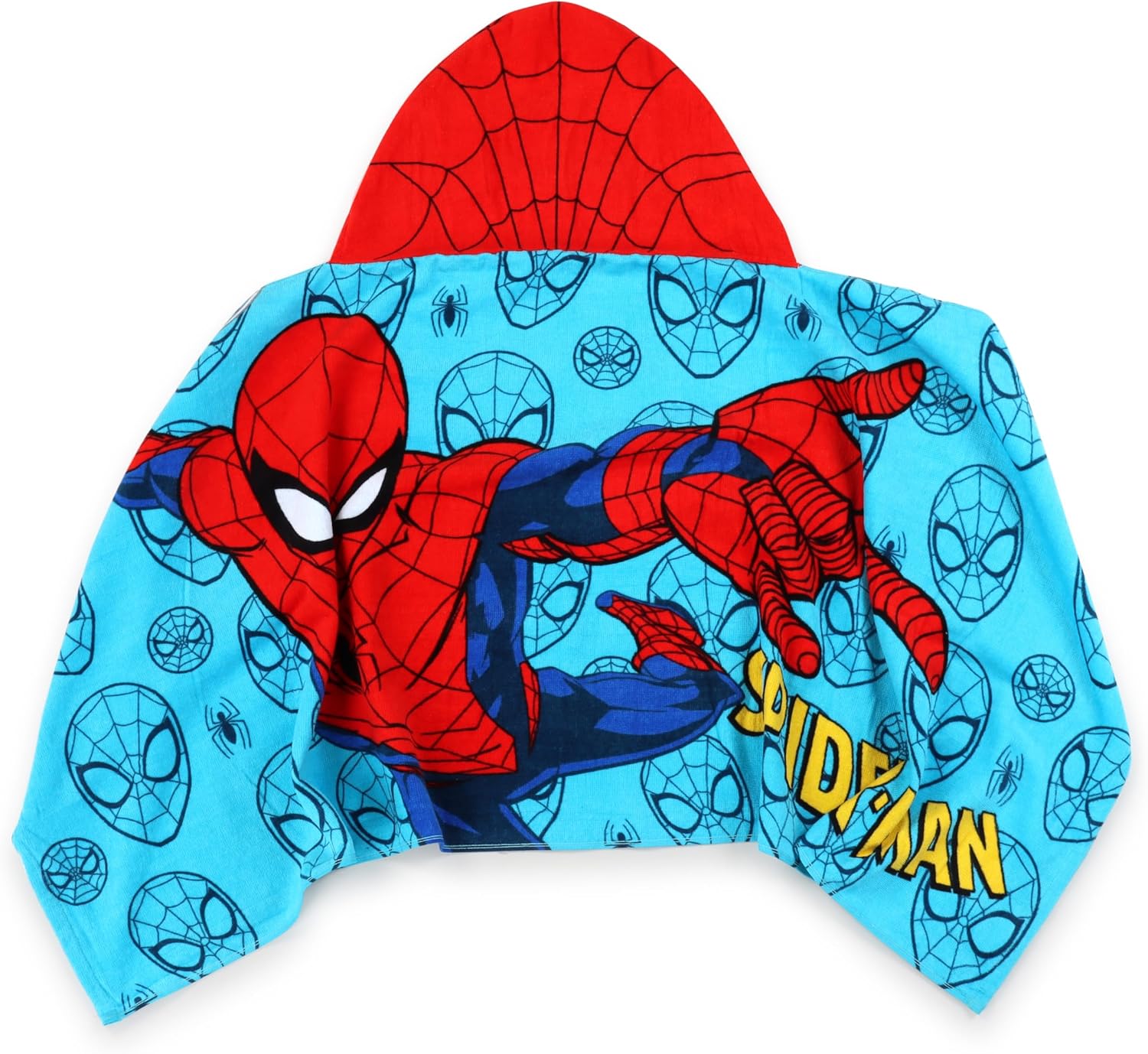 Wrap up in comfort and style with the Jay Franco Spider-Man Hooded Bath and Beach Towel, designed to keep kids warm, dry, and cozy after every swim or bath. Featuring dynamic artwork of Spider-Man mid-leap against a bold graphic background. The hood showcases Spider-Man’s mask design with expressive eyes for superhero dress-up fun. This fun hooded wrap is perfect for bath time, beach trips, poolside lounging, or summer vacations. Made from 100% cotton terry, it offers excellent absorbency while staying soft and gentle on skin. Measuring 22" x 51" inches, the clever hooded design provides extra coverage and comfort, while the lightweight construction makes it easy to pack for holidays, pools, or sleepovers. Durable and machine washable, this hooded towel combines practicality with fun style—making it a must-have essential and a delightful gift for children of all ages.