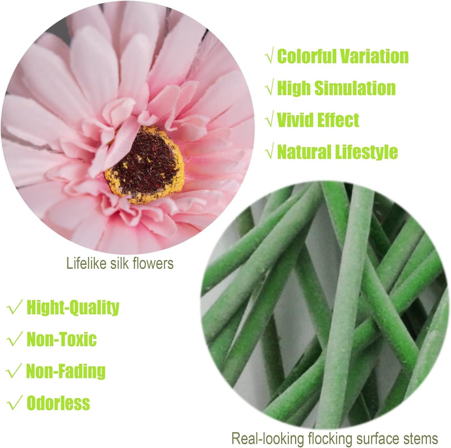 | Recommended Uses For Product | indoor home decoration, table flowers, wedding decorations, gift for flower lovers |