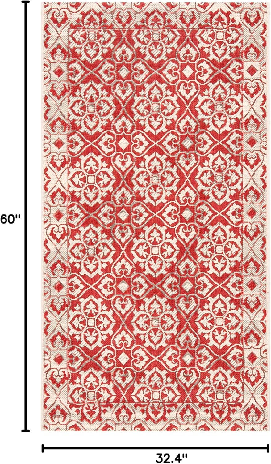 Safavieh's Courtyard collection is inspired by timeless designs crafted with the softest polypropylene available. This rug is crafted using a power-loomed construction and features a main accent color of Red. Perfect for any backyard, patio, deck or poolside, this rug will instantly turn your outdoor area into a resort-style entertaining space. Finely crafted for seasons in the sun and years of open-air gatherings, the Courtyard rug instantly elevates any interior or exterior décor to a space of visual inspiration. More than a decorative enhancement, this rug is both and -ant to ensure carefree maintenance. With its style, practicality, and transitional decorating options, this rug extends an open invitation to gather and may just spark impromptu parties. Primary Color: red Pile Height: 0.25 inchesStyle: ContemporaryConstruction: Power-loomedRug Type: Indoor/OutdoorFeature: Latex FreeRug Dimensions: 2'7" x 5'