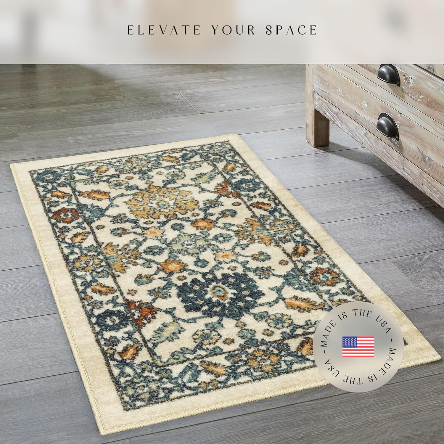 Enhance your living space with this traditional oriental design rug, featuring a tan background complemented by blue and rust accents. Crafted from durable polyester, this rug not only adds a touch of elegance but also ensures longevity and easy maintenance. The non-skid latex backing provides stability, making it a perfect choice for high-traffic areas while keeping your floors safe and stylish.