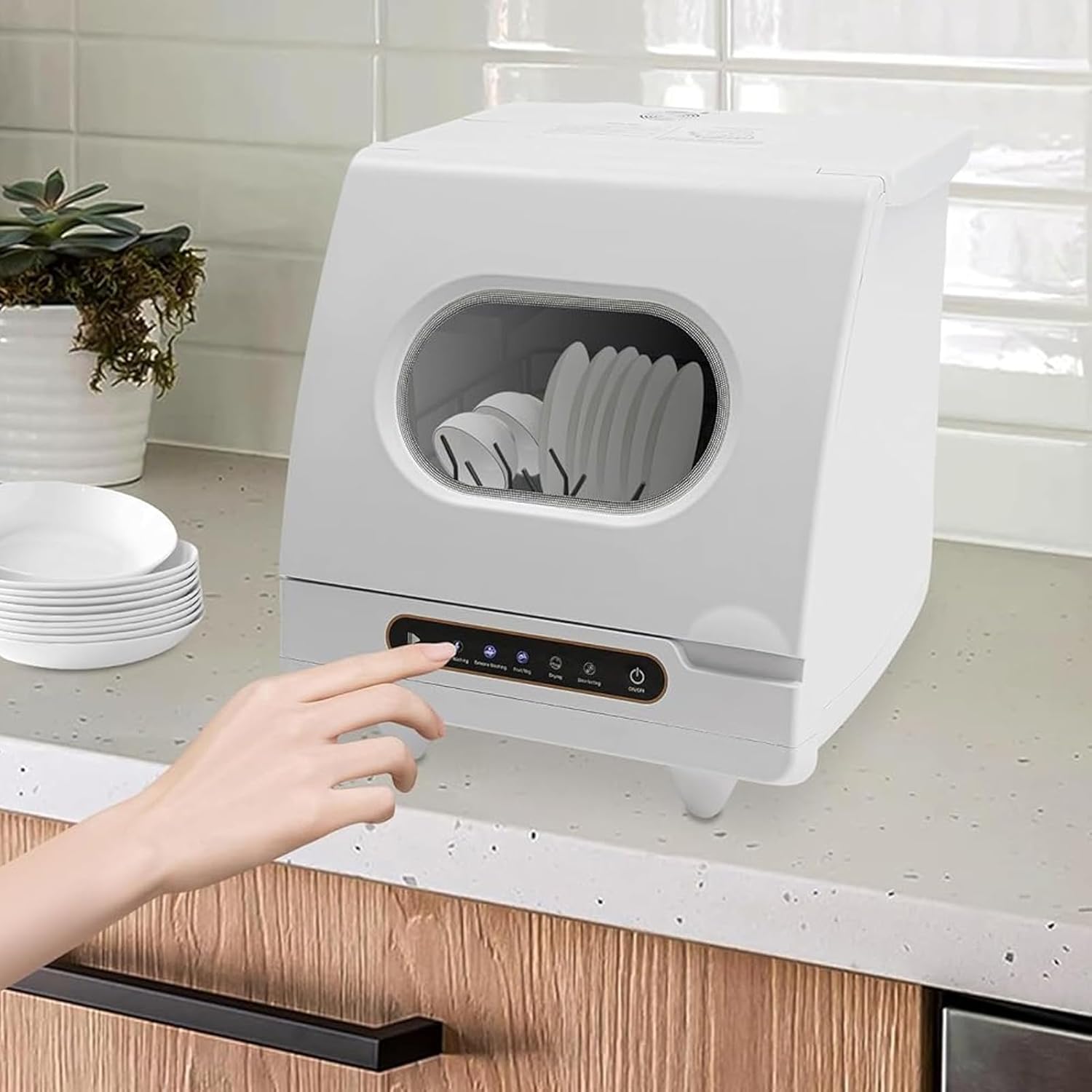 Experience convenient dishwashing with our advanced dishwasher featuring a flip-up lid with magnetic induction and a user-friendly groove design for easy opening and closing. This model includes a removable and washable internal filter that allows for hassle-free disposal of food scraps. Perfect for cleaning dishes after meals, it effectively sanitizes plates, utensils, cups, and even fruits and vegetables.Specifications include:- Material: PP, ABS, Stainless Steel- Color: White- Washing Method: High-temperature Water with Darts Rotary Spray- Drying Method: Hot Air Circulation- Opening Method: Upward Flip- Disinfection Mode: Strong Oxygen Sterilization- Rated Water Pressure: Suitable for Municipal Water SupplyFunctions:- Quick Wash: 19 minutes- Strong Wash: 55 minutes- Fruits/Vegetable Wash: 15 minutes- Self Clean: 6 hours- Disinfection: 20 minutesPlug options are available for US, UK, and EU standards with a power rating of 800W. It operates at voltages of 110V/220V and 50Hz-60Hz, with fuse currents of 60A/10A. The working temperature can reach up to 72°C/161.6°F while maintaining a noise level of 55dB. Water consumption is capped at a maximum of 5L (1.32 gallons), and the dishwasher supports a capacity of 6 sets, accommodating tableware up to 38cm (15 inches) in diameter.The package includes 1 dishwasher, 1 water inlet hose (1.6m/63in), 1 drain hose (94cm/37in), and an English manual along with necessary installation accessories.