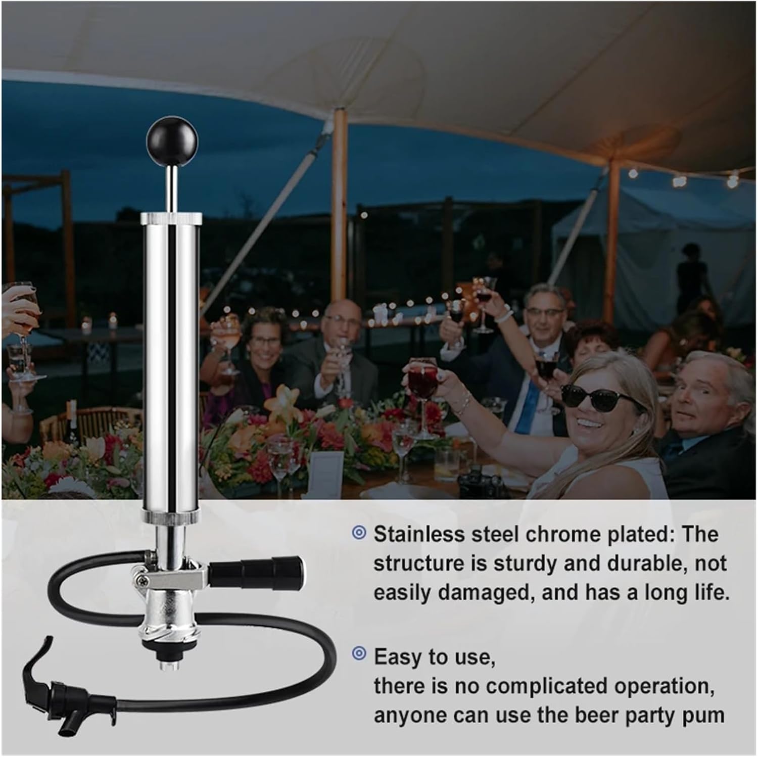 4 Inch Picnic & Party Pump Beer Keg Tap Simple Homebrew Kegerator Dispenser Keg Party Pumps with D System S System Keg Coupler SpecificationDimension 4" Metal PumpMaterial: Sturdy Brass Chrome-PlatedBlack Faucet & Hose Food Grade PVCHose Clamp 304 Stainless SteelOur AdvantagesKeep Pressure Steadily Without LeakQuick & Easy to Set UpLong Lasting Use and Saving Your DepositSspecially designed for easy keg tappingNo need to worry about leaks with 2 stainless steel hose clamps, ==========Hign-concerned Chemical : NoneProduct Type : Carbonation EquipmentMaterial : STAINLESS STEEL