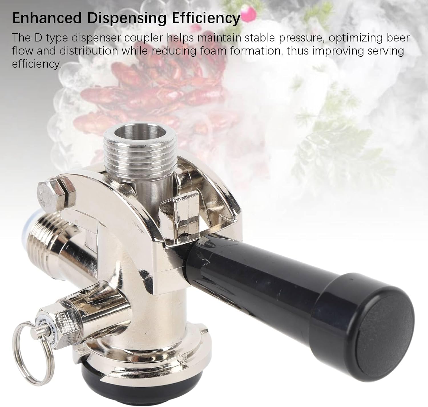 1. Precise Filtration System: Equipped with an efficient filtration system, the Keg Coupler removes impurities from the beer to ensure every pour is clear and pure, enhancing the drinking experience. 2. Standardized Interface Design: Featuring a G5/8 standard interface, this tap coupler is compatible with a wide range of common kegs and equipment, allowing for broad applicability and ease of connection for users. 3. Enhanced Dispensing Efficiency: The D type dispenser coupler helps maintain stable pressure, optimizing beer flow and distribution while reducing foam formation, thus improving serving efficiency. 4. Long Durability: Constructed from wearproof and antirust materials, the beer tap coupler maintains exceptional performance over extended periods, minimizing the need for frequent replacements and repairs. 5. Easy Installation and Maintenance: Designed with user experience in mind, the keg coupler offers simple and intuitive installation and dismantling, making routine cleanup and maintenance straightforward and time saving. Specification: Item Type: Keg Tap Coupler Material: Stainless Steel Weight: Approx. 605.00g / 21.34oz Package List: 1 x Keg Tap Coupler Set (5 Pieces in Total)