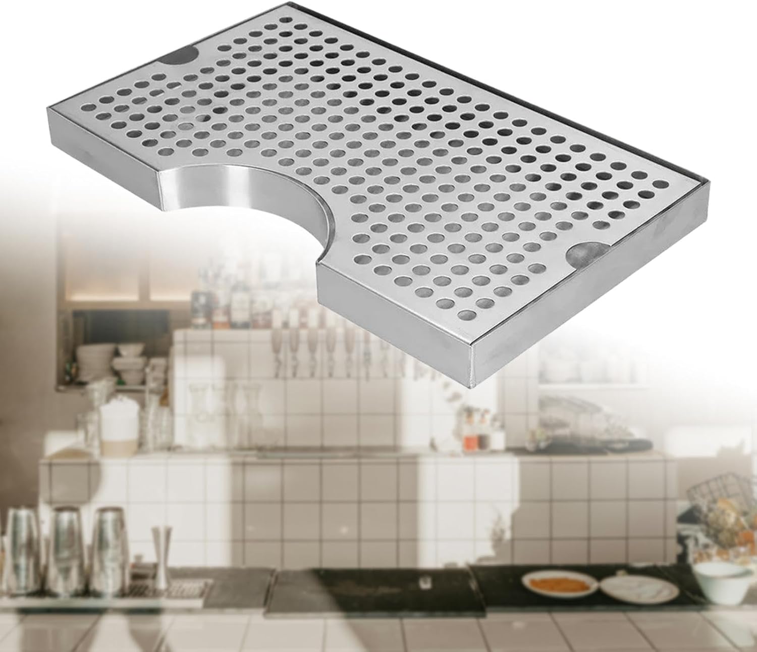 Description: - 【Premium 304 Stainless Steel Construction】: Crafted from quality 304 stainless steel, this Beer Drip Tray is rust resistant, ensuring durability even with prolonged exposure to water or liquids - 【Efficient Drainage Design】: The The Kegerator Drip Tray features a surface with evenly distributed drainage holes that allow for quick liquid runoff, keeping your workspace clean and tidy - 【Versatile Large Surface】: Designed to fit various settings such as bar, coffee machines, sink sides, and drink stations, this tea tray effectively collects excess liquids and prevents spills from spreading - 【Convenient Two Piece Structure】: The Stainless Steel Keg Drip Tray detachable design allows the tray and drainage grid to be separated easily for easy cleaning and maintenance - 【Sturdy Multi Functional Use】: Great for catching drips of water, oil residues, or tea leaves; this versatile drainage kungfu tea tray is suitable for use in bar, cafes, restaurants, and more. Its sturdy construction withstands pressure without deforming under frequent use on countertops or beneath beverage machinesSpecification: - Material: 304 Stainless steelSize Chart:30.3cmx18cmx2.4cm/11.93inchx7.09inchx0.94inchPackage Includes:1 Kegerator Beer Drip TrayNote:Please allow slightly errors due to manual measurement and different monitors.