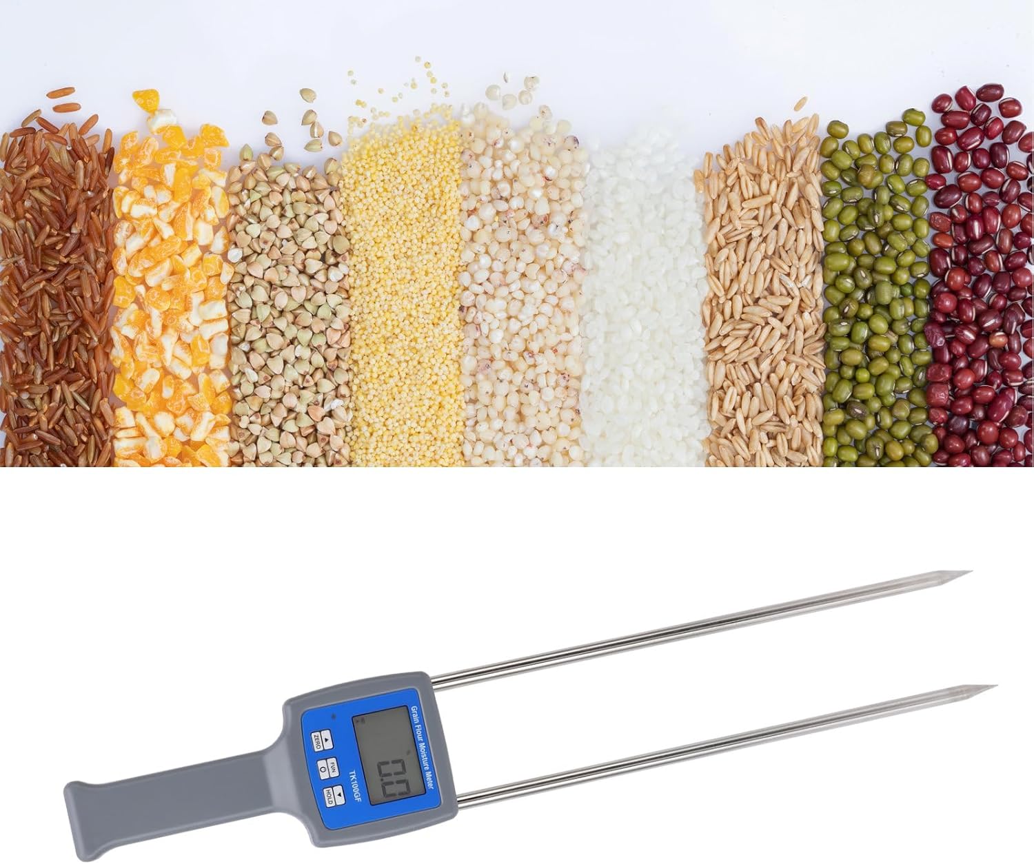 1. Bright and Accurate Display: The humidity meter has a digital display with backlight that allows accurate reading of measurements even under severe conditions. 2. Efficient Drying Monitoring: By monitoring grain dryness, this device can save time and costs, and help prevent and rot caused by humidity during storage. 3. Automatic Power Shut Off: The device off automatically 5 minutes after the last action, preserving battery life. It can also be manually turned off at any time. 4. Clear Display: This digital grain humidity meter is equipped with backlight LCD display with low power consumption, and distinct fonts that are comfortable to read under any condition. 5. Operates through Conductivity: The humidity meter runs through conductivity and features an automatic temperature compensation function for reliable and accurate readings. 6. Ensures Grain Quality: With the grain humidity detector, you can efficiently detect and manage the humidity content of grains, ensuring they meet storage and overall quality requirements. Specification: Item Type: Digital Grain Humidity Meter Material: ABS, Stainless Steel Battery: 4 x AAA Battery (battery not included) Size: Approx. 458 x 75 x 33mm / 18.03 x 2.95 x 1.30in, Probe Length: 280mm / 11.02in Working Principle: Electrical Conductivity, Automatic Temperature Compensation Display: 4 digit LCD Measurement Range: 6-30% Operating Conditions: Temperature: 0-60°C Humidity: Resolution: 0.1 Accuracy: ±0.5% Application: Widely used for wheat/Rye, Corn, Paddy, Coarse Flour/Wheat Flour, Rice, Soybean, Coffee, Pea, Flour/Soft, Sorghum, Barley/Oat Weight: Approx. 424.00g / 14.96oz How to Use: Ready to use with batteries installed Package List: 1 x Grain Humidity Meter 1 x Storage Bag 1 x User Manual Notice: Please allow ±3cm error due to manual measurement. Thanks for your