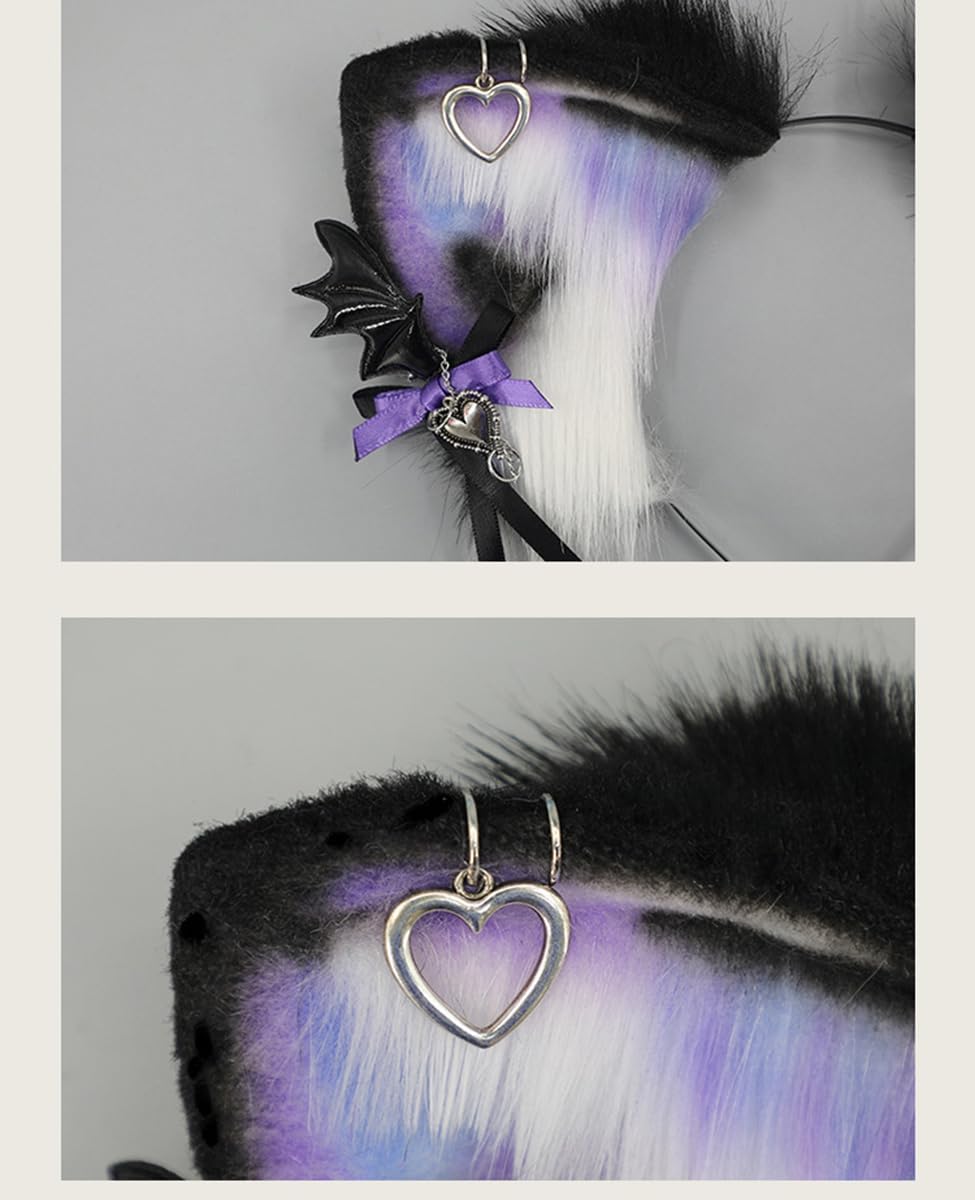 Faux Fur Cat Fox Ear Headband with bow Women Girls Cute Make Up Halloween Gothic Fancy Dress Cosplay Costume Hair Accessories Japanese Lolita Kawaii Animal Plush Furry Ears Hair Hoop (not suitable for under 15 years old ) Occasion : Kawaii Headwear Perfect for Home Dress Up , Halloween , Masquerade , Anime Role Playing Party Costume, Masquerade, Christmas, Carnival, School Performance,Nightclub Etc Color : Black Purple Kitten Ears Size : 3.93" X 3.14"