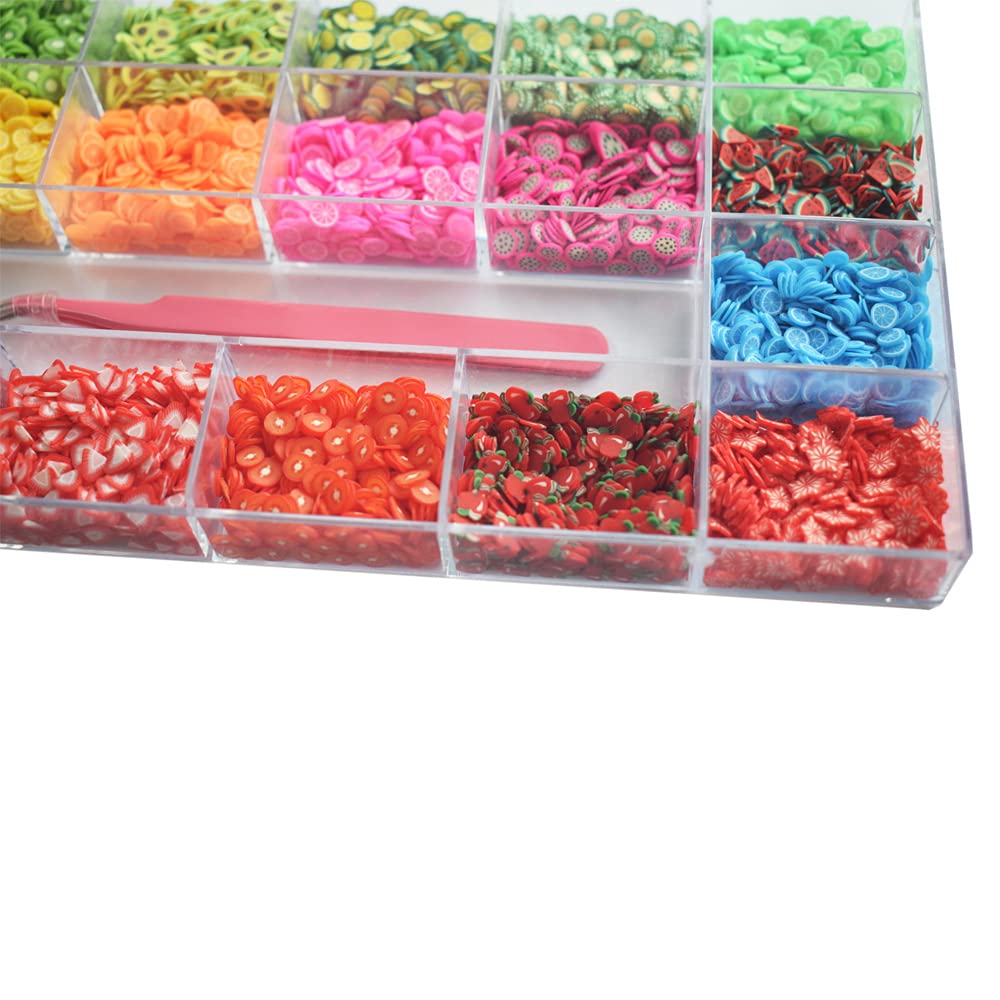 Feature: 1. Great Variety DIY nail art slices with vibrant colors and 20 assorted shapes meet various daily needs. 2. Come with Container, 20 kinds nail art slices and a Tweezers in 21 grid plastic storage box, convenient to use and store. 3. All in fruit shapes, can satisfy your different nail art decorations, providing a colorful and bright life style for you. Design: Multiple colors, including green, white, red, yellow, purple and so on Various shapes, lemon, apple, banana, watermelon, strawberry, grape, orange, dragon fruit, grape, kiwi,tomato,Avocado,Carambola, flower Wide Applications: Nail decals Glue the fruit nail decals on nail, fit all fingernails, toe nails and nail tips. Handmade craft Suitable for making craft, decorating mobile phone, books, media player. Package Included: 1 Box Nail Art Slice 1 Tweezers