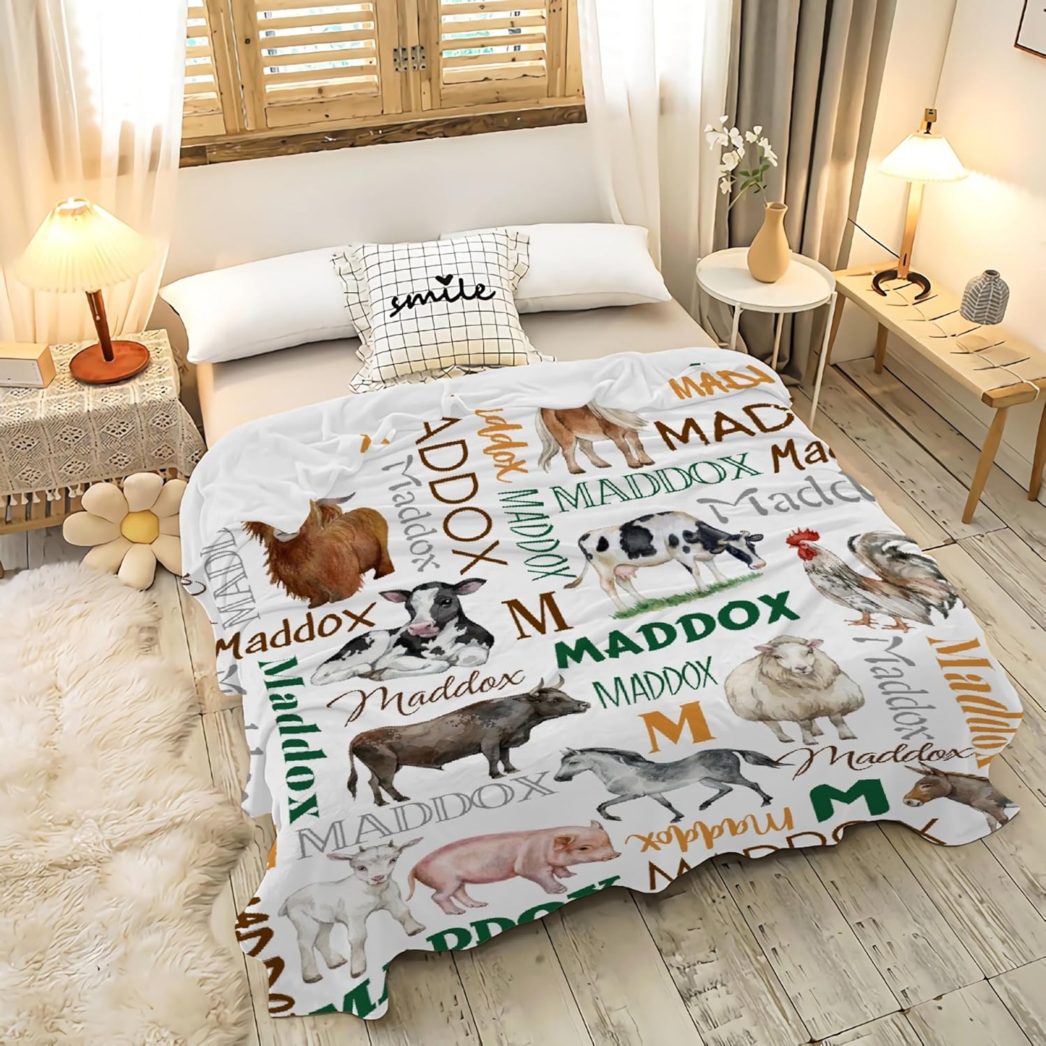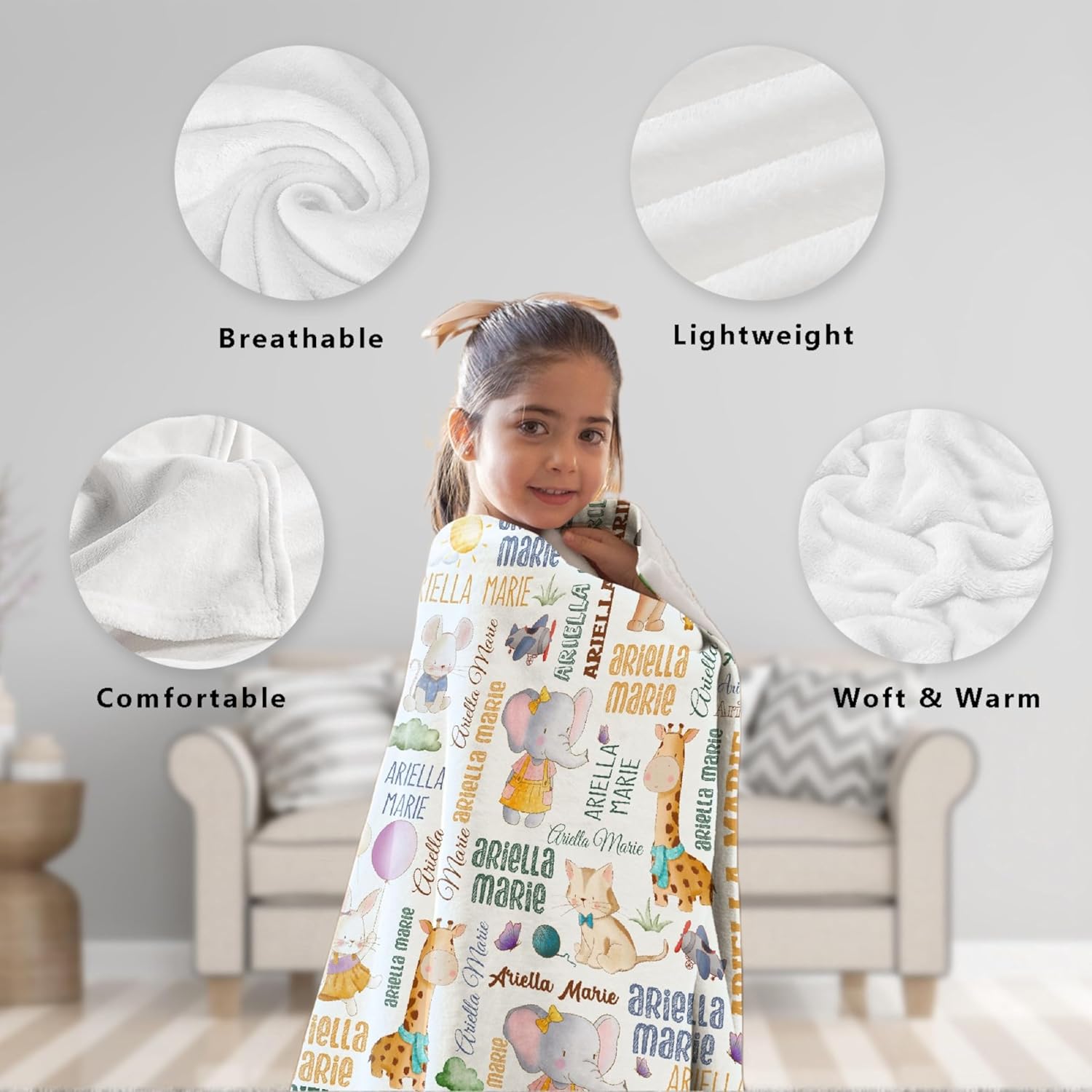 Would you like to choose a comfortable and practical blanket for your family or friends?Let’s take a look at our Animals Custom Name blankets![Premium Fabric]Our Animals Custom Name soft blankets are made of polyester fabric, give you 100% fluffy comfort. The soft and smooth surface fabric is warm, durable, breathable, and has an excellent tactile feel, without any harmful substances to the skin or health. It is a safe choice for you.[Size]Our Animals Custom Name blanket comes in various sizes to meet different needs.(1)30*40 inches: The smallest size, more suitable for babies or small pets.(2)40*50 inches: The small size, more suitable for child.(3)50*60 inches: The medium size, more suitable for teen aged 12-16.(4)60*80 inches: The large size, more suitable for adult.(5)90*120 inches: The oversize size, suitable for all aged people.[Wide range of applications]Our Animals Custom Name flannel blankets can be used in many scenarios, such as Birthday/Anniversary/Halloween/Thanksgiving/Christmas/Easter gift for your loved, such as children, partners, parents.[Care instruction]Our Animals Custom Name flannel blankets are made of easy to clean materials, which are very durable and can be used for a long time. They are also easy to maintain and can be cleaned in a washing machine, saving your time and energy.If you have any questions about our product, please feel free to contact us and we will reply to you as soon as possible within 24 hours. Looking forward to your choice of our product. Wishing you a pleasant shopping experience!