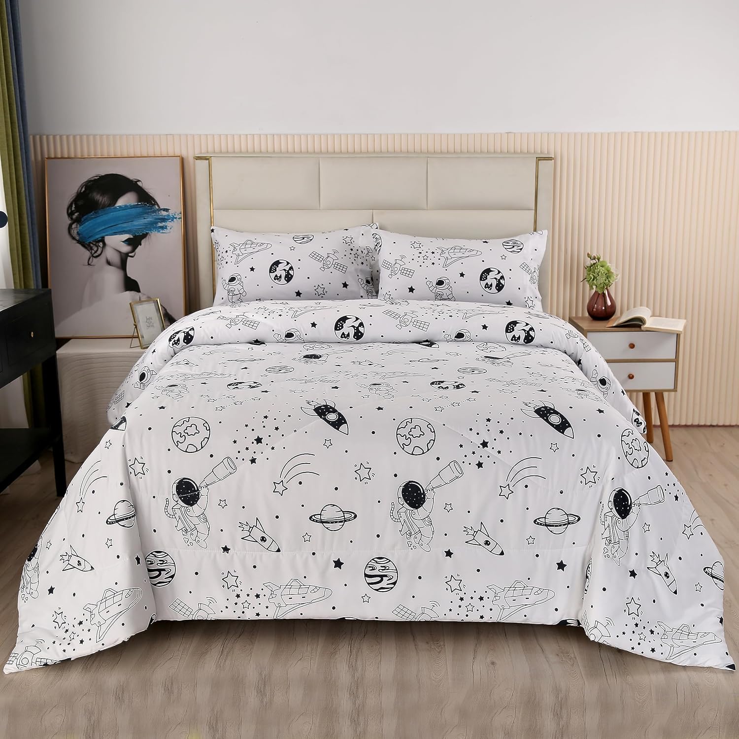 MAG 3Pcs White Out Space Bedding Comforter Set,Space Bedding Twin,Galaxy Comforter Set for Toddlers Kids,Boys Teens and Girls,Microfiber (1 Comforter + 2 Pillowcases)