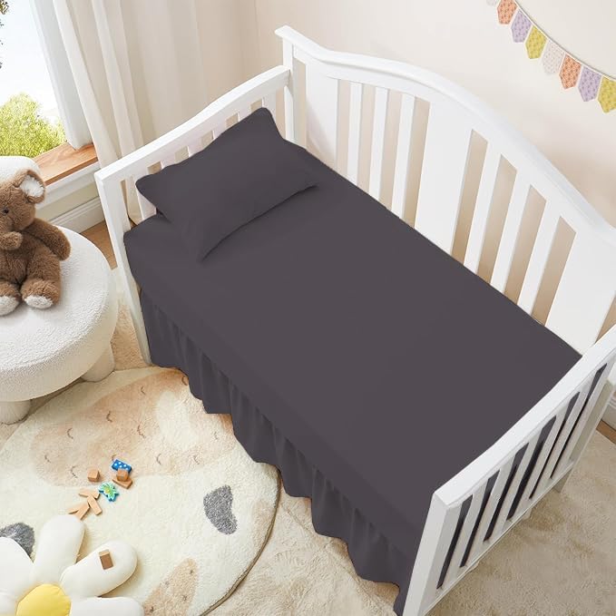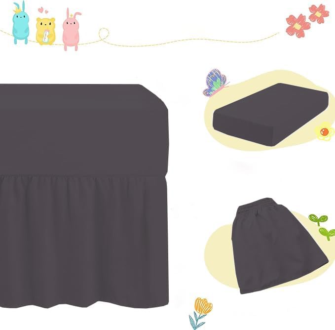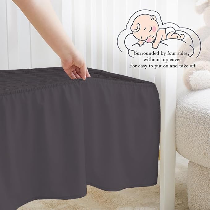 Crib Ruffle Bed Skirt (28” x 52”) with 14” Inch Drop Dust Ruffle for Baby Boys or Girls Nursery Crib Toddler Bed Skirt Microfiber Fabric - Dark Grey Solid