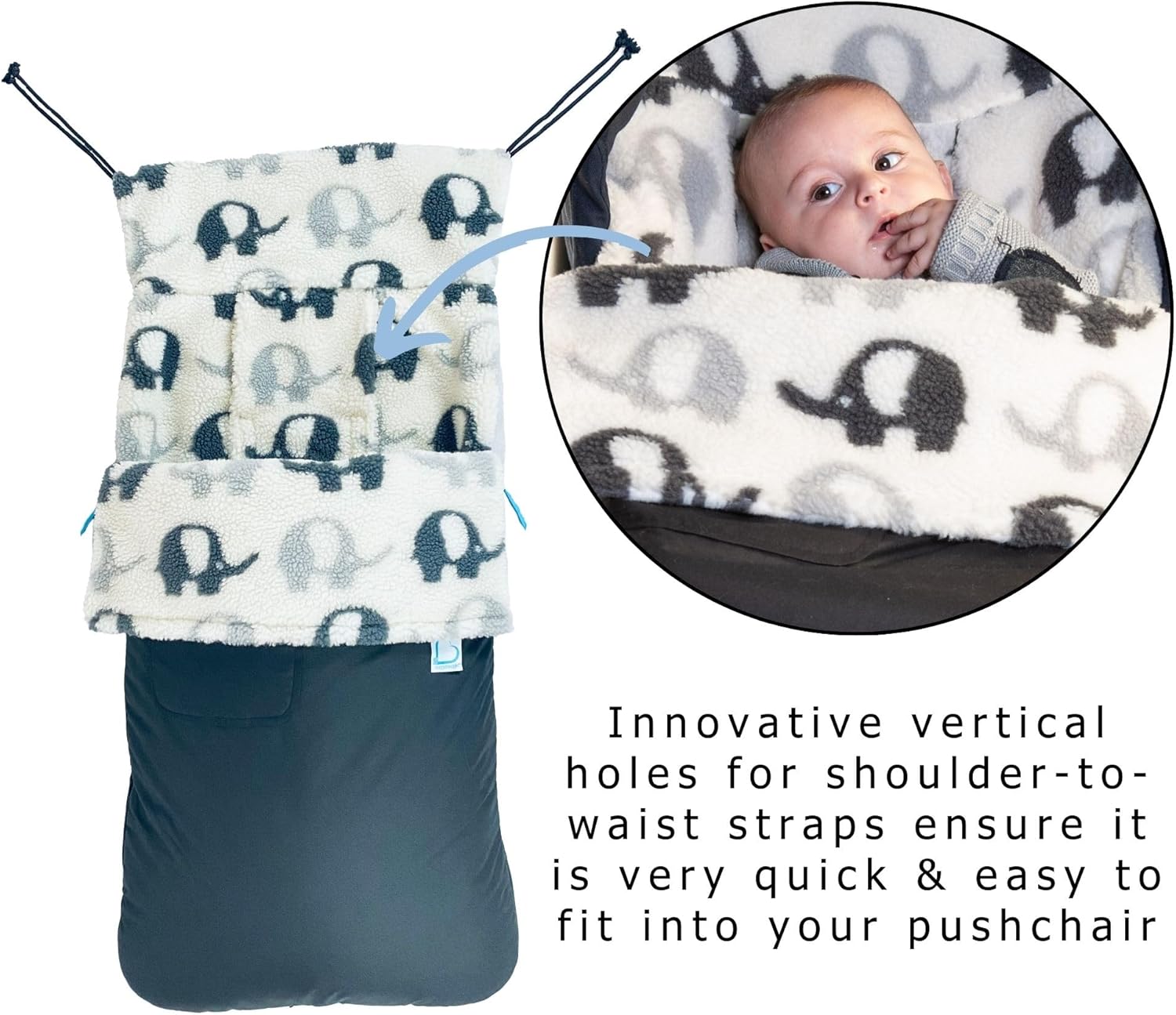 Our multi-award winning Buggysnuggle has been keeping babies warm since 1998. It’s designed to cuddle around your baby like a blanket, but won't fall off or get caught in the wheels of your pushchair. Top quality fabrics snuggle & protect your little one from the elements and its unique & innovative design will fit most pushchairs. All our Buggysnuggle footmuffs will protect your little one from a light shower however; our BSnug Explorer collection is specifically designed with a waterproof exterior that will keep them dry in whatever the great outdoors can throw at you.