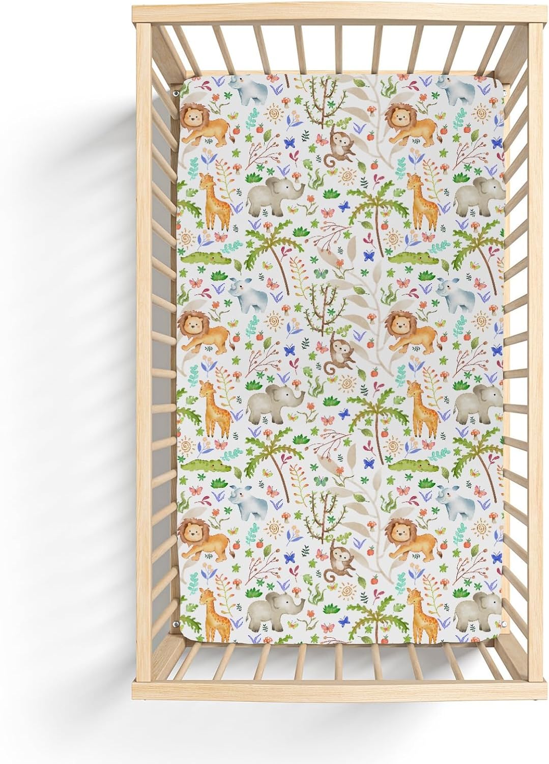 The baby crib sheet coordinates nicely with our matching nursery products for a one-of-a-kind accent. Our nursery collection includes baby blanket, baby changing pad cover, nursery valance, nursery rug, nursing pillow cover, car cover, and so on. With various cute prints, our crib sheets are perfect for any nursery theme. You can choose to match the different decoration of the room. These crib sheets create a cozy, secure sleep environment, promoting better sleep while blending with your decor. Crafted for both boys and girls, these sheets are a practical choice, ensuring better sleep for your baby day or night. Material: Our crib sheet is made of ultra soft silky polyester, carefully selected fabrics for baby, which is super soft, comfortable, and breathable, let your baby sleep peacefully all night long. Perfect Size & Snug Fit: Measuring 28 by 52 inches with 9 inches deep pocket and whole elastic bandage surround, our crib sheets can perfectly fit standard crib mattress or toddler mattress up to 9 inches. A whole strong elastic band at the bottom help keep the sheet stay flat right in place securely and snugly to create a safe and comfortable sleep environment for babies. Great Gift Idea: A practical and thoughtful gift for the baby shower, newborn, baby registry, birthday, Christmas, or any other special gift-giving occasion. Wash Instructions: These baby crib sheets are fade resistant and machine washable for easy care. Simply place them in the washing machine, set them on a gentle cycle with cold water and dry them on low heat or line dry.