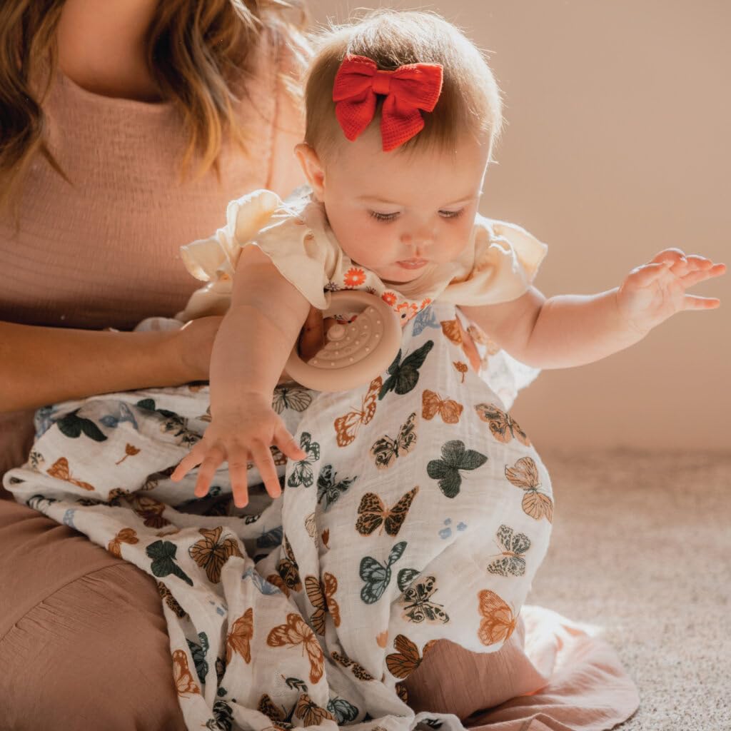 This everyday essential swaddle boasts hand-painted prints, crafted from lightweight, breathable cotton muslin, perfect for swaddling, nursing, cuddling, and more.