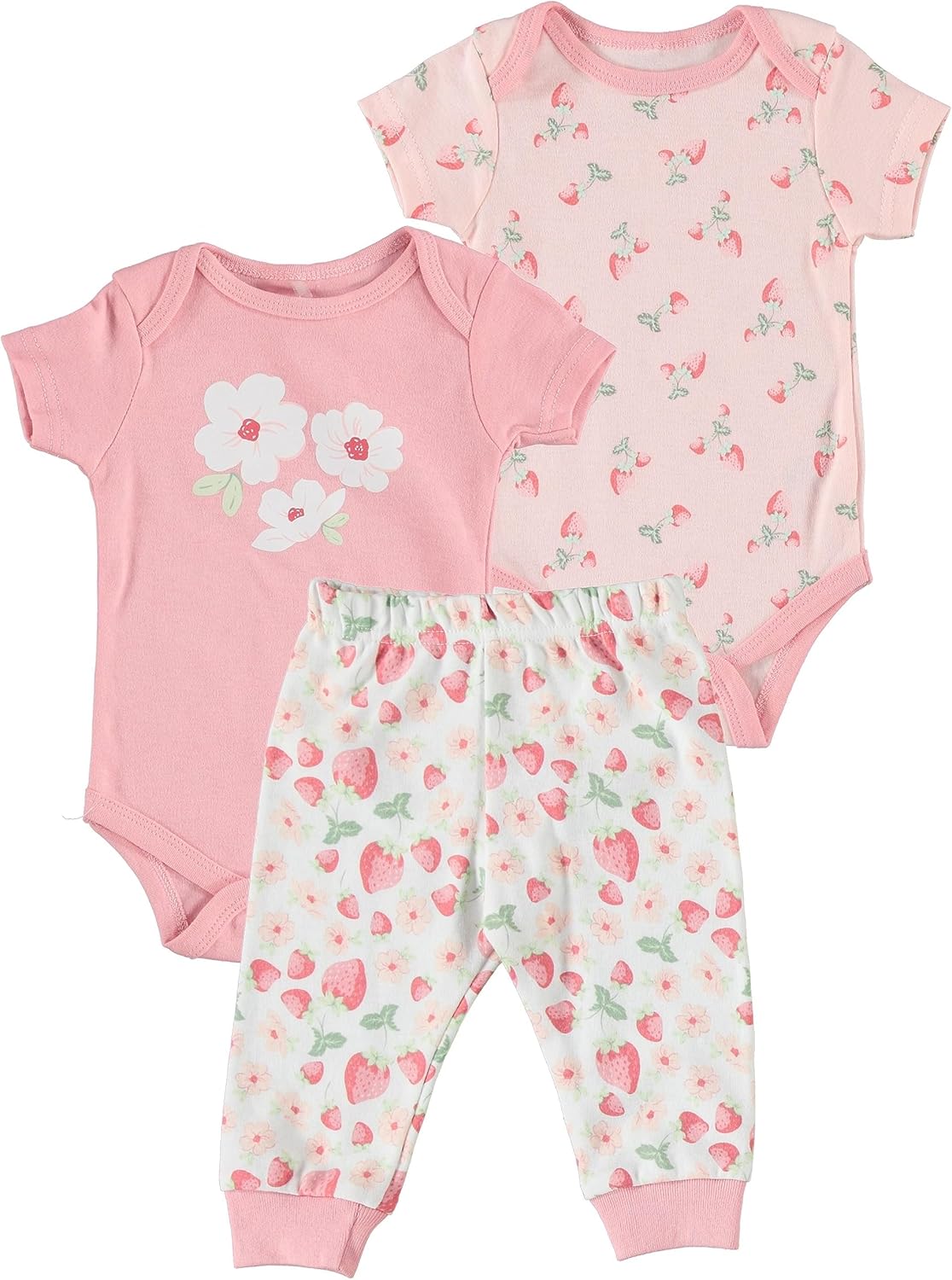 Onesie Odyssey: This 2-pack onesie set, crafted from soft material, is the ultimate in baby clothes. Each onesie features a delightful print and snap closures, making them the heart of our charming jogger set