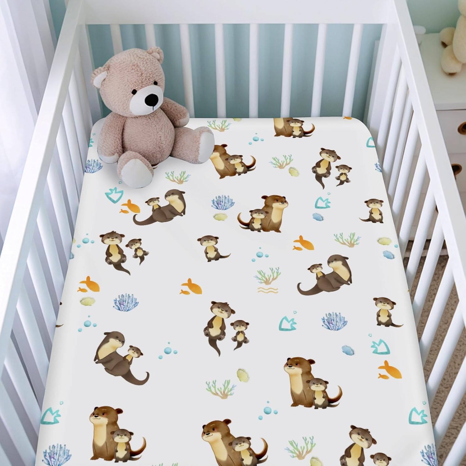 The unique designed baby crib sheets add a cozy and comfortable look for your little baby's room. Mix the fun of matching, printed patterns and vibrant colors to create a cozy sleeping area. The baby sheet crib fits perfectly on most standard crib mattresses and toddler mattresses, measuring 52" x 28" x 9". Featuring an elastic band, easy to put on and take off. 360-degree coverage for your luxury mattress. Match any nursery style and cribs of your dreams. Whether you're expecting a boy or girl, newborn or toddler, these unisex bed sheets for baby will never go wrong. We offer various nursery bedding accessories: baby blanket, bassinet sheets, portable crib sheets, changing pad covers, nursery area rugs, nursery tapestry, nursery pillow covers and nursing covers.