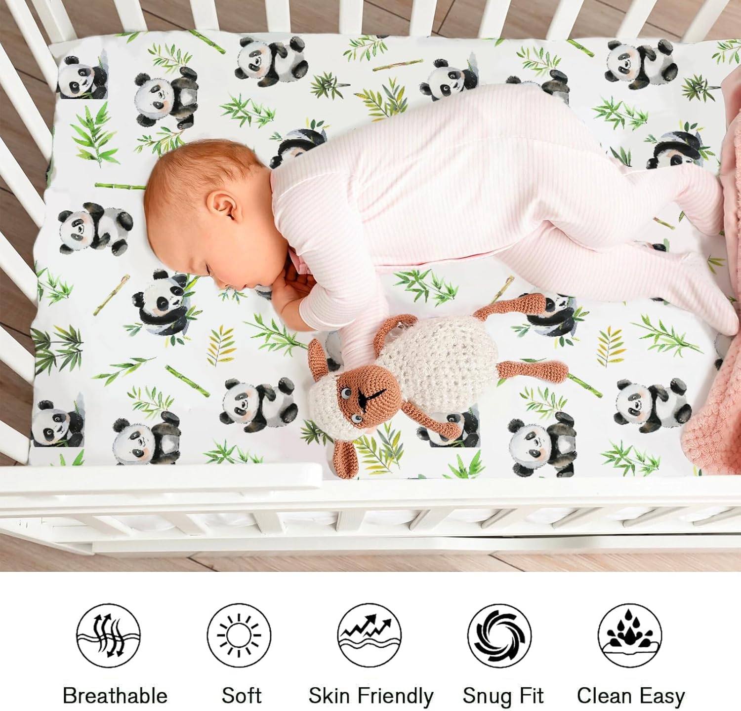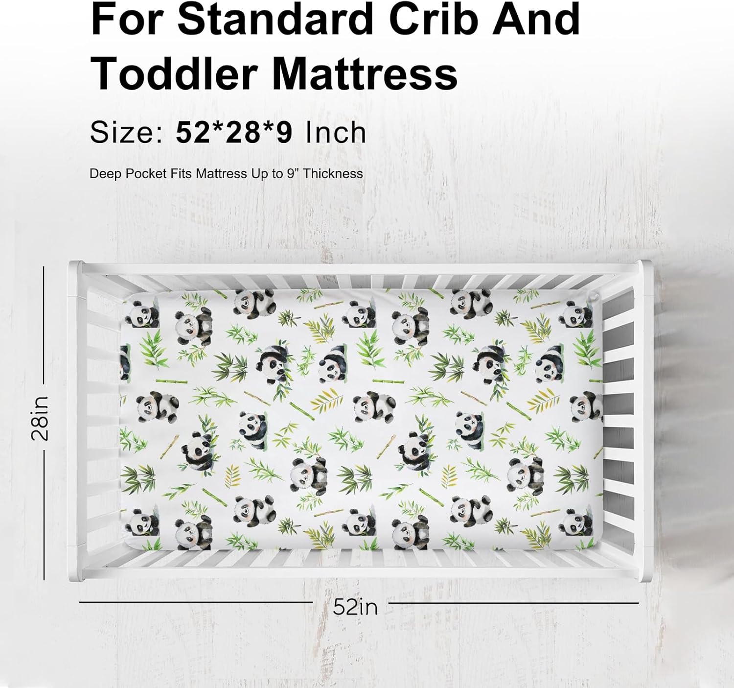 The unique designed baby crib sheets add a cozy and comfortable look for your little baby's room. Mix the fun of matching, printed patterns and vibrant colors to create a cozy sleeping area. The baby sheet crib fits perfectly on most standard crib mattresses and toddler mattresses, measuring 52" x 28" x 9". Featuring an elastic band, easy to put on and take off. 360-degree coverage for your luxury mattress. Match any nursery style and cribs of your dreams. Whether you're expecting a boy or girl, newborn or toddler, these unisex bed sheets for baby will never go wrong. We offer various nursery bedding accessories: baby blanket, bassinet sheets, portable crib sheets, changing pad covers, nursery area rugs, nursery tapestry, nursery pillow covers and nursing covers.