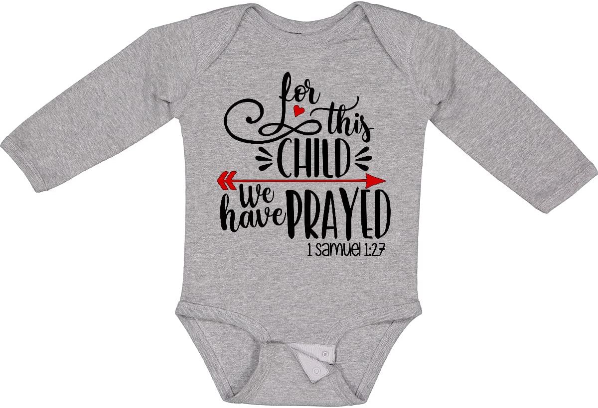 For This Child We Have Prayed Red Arrow and Heart Long Sleeve Creeper biblical quote.