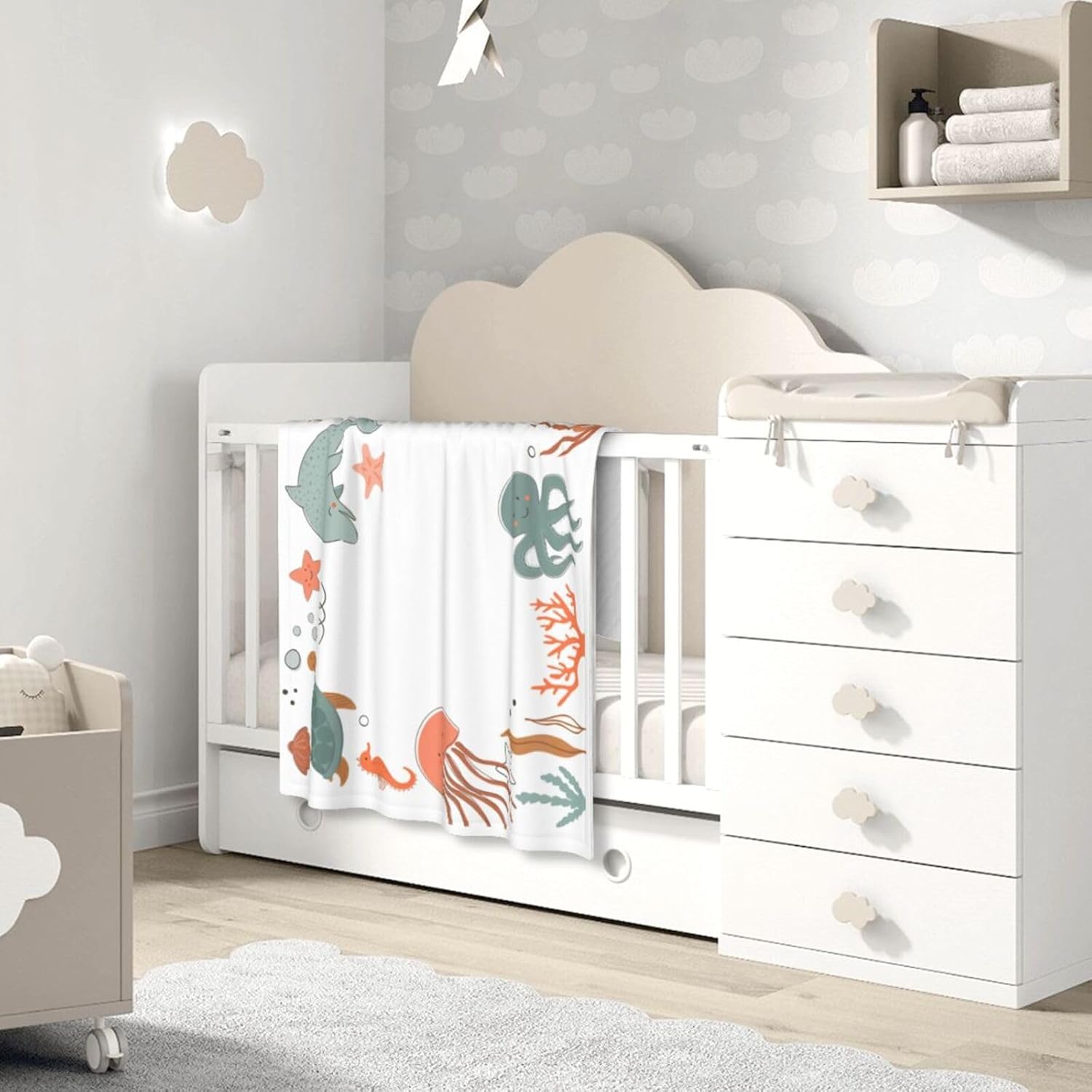 Unveil the magic of your baby's monthly milestones with our enchanting ocean baby milestone blanket. Each month is a chapter in their story, and this blanket is the perfect canvas to capture and celebrate these precious moments.Crafted from the softest flannel, our baby monthly milestone blanket is a cocoon of comfort for your little one. Feel the plushness as you lay them down for their monthly photo session, creating a cozy haven that reflects the warmth of your love.Measuring a generous 40*50 inches, our monthly baby milestone blanket provides a sprawling backdrop for your baby's monthly achievements. Whether it's their first smile, tentative steps, or curious explorations, this blanket ensures every milestone is framed with love.Looking for the perfect gift for expecting parents or those celebrating the arrival of their bundle of joy? Our ocean baby milestone blanket is not just a gift; it's a timeless keepsake. A thoughtful gesture that speaks volumes, encapsulating the joy of monthly celebrations.This blanket is more than a monthly milestone marker; it's a versatile companion throughout your baby's growth journey. Transform it into a snug swaddle, a protective stroller cover, or an adorable piece of nursery decor. Watch it adapt and grow with your little one.Don't let these monthly moments slip away—seize the opportunity to create a tapestry of memories.