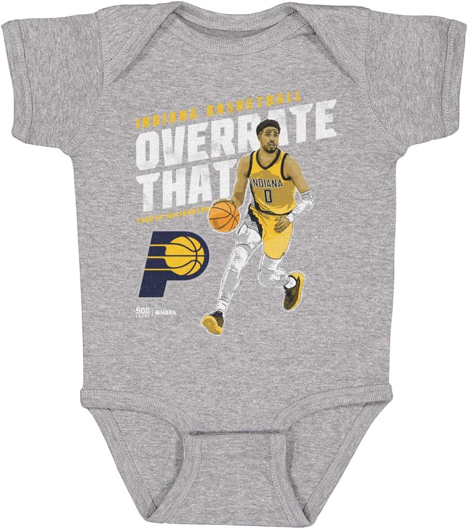 Add a burst of fun to your infants Indiana Pacers baby clothes collection with this Tyrese Haliburton Baby One-Piece, perfect for your little MVP! This cozy and cute bodysuit is designed to delight both budding Indiana Pacers fans and stylish tots alike. Featuring a playful and vibrant Tyrese Haliburton-themed graphic, it's an ideal way to celebrate your love for Indiana Pacers Basketball while keeping your baby comfortable and trendy. Crafted from soft, high-quality fabric, our one-piece's are gentle on your baby's skin, ensuring they stay comfy whether they're playing or napping. Available in a range of sizes to fit infants of all ages, it's a perfect baby shower gift for Indiana Pacers-loving families or a charming addition to your little one's wardrobe. About: 100% Rib Cotton Baby Onesie, combed for softness and comfort (Heather Grey contains 10% Polyester). Neckline designed for easy on-and-off changing. Reinforced yet relaxed sleeve, neck, and leg openings. Fit: Unisex sized, boutique-quality infant onesie designed for maximum comfort and fit on babies from 3 Months-24 Months Care: Wash inside-out with cold water, tumble dry lowWhy Buy from 500 LEVEL?At 500 LEVEL, we love everything about sports: the tailgating, our favorite teams & players, the huge upsets, and the epic moments. Most of all though, we love an awesome t-shirt! As art junkies headquartered in Austin, TX, we provide a bold, unique, and exciting concept for fan apparel compared to the cookie-cutter jerseys and name & number fan t-shirts that are all too common these days. 500 LEVEL's mission is to have the coolest, most comfortable, and widest variety of player apparel in the industry!