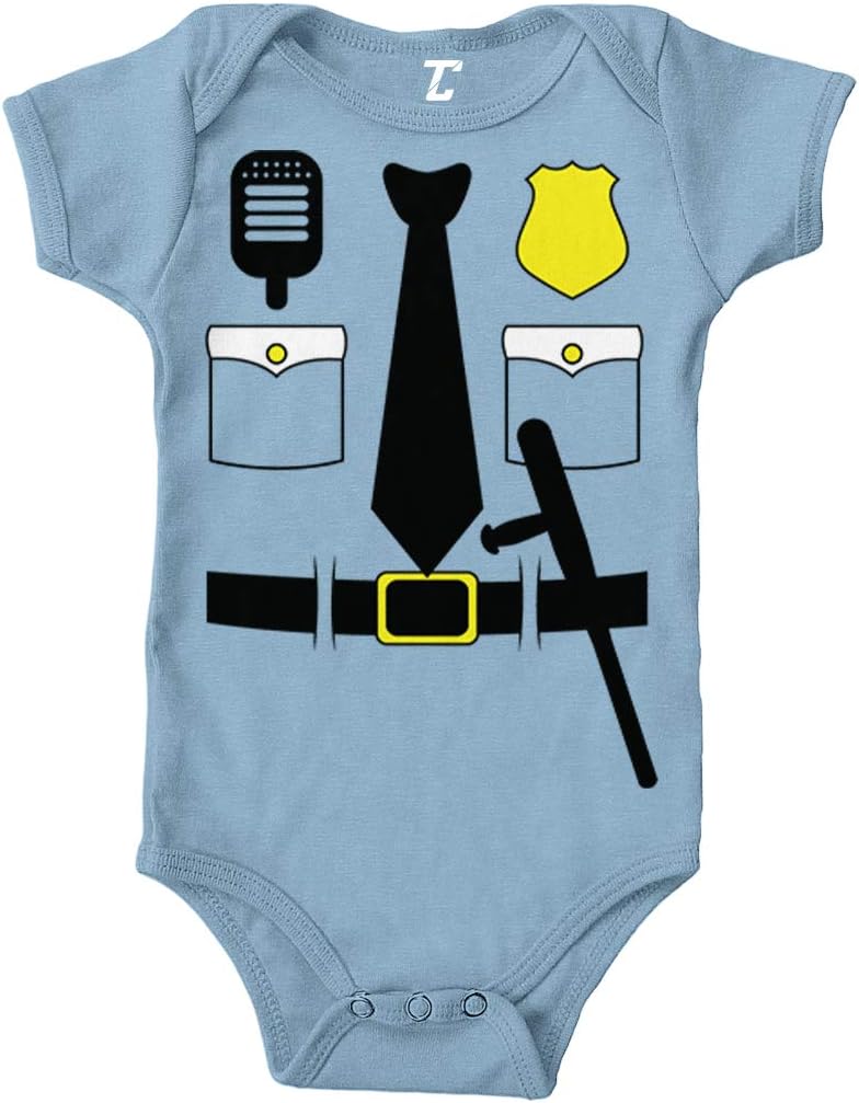 Looking for the perfect onesie to celebrate Halloween? Look no further! This adorable Cop Outfit - Police Officer Trooper Bodysuit is a comfortable, affordable way for your child to express themselves. Whether purchasing for a son, daughter, or future cop you can be sure to put a smile on their face. The design is printed on a soft, comfortable, 100% combed ringspun cotton bodysuit. This amazing onesie will become a staple in your child's wardrobe. Features 1x1 baby rib and lap shoulders to make it easier for the many times a day parents change the baby's outfit.