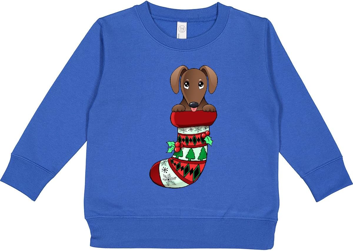 Dachshund in a Christmas Holiday Stocking Toddler Sweatshirt.