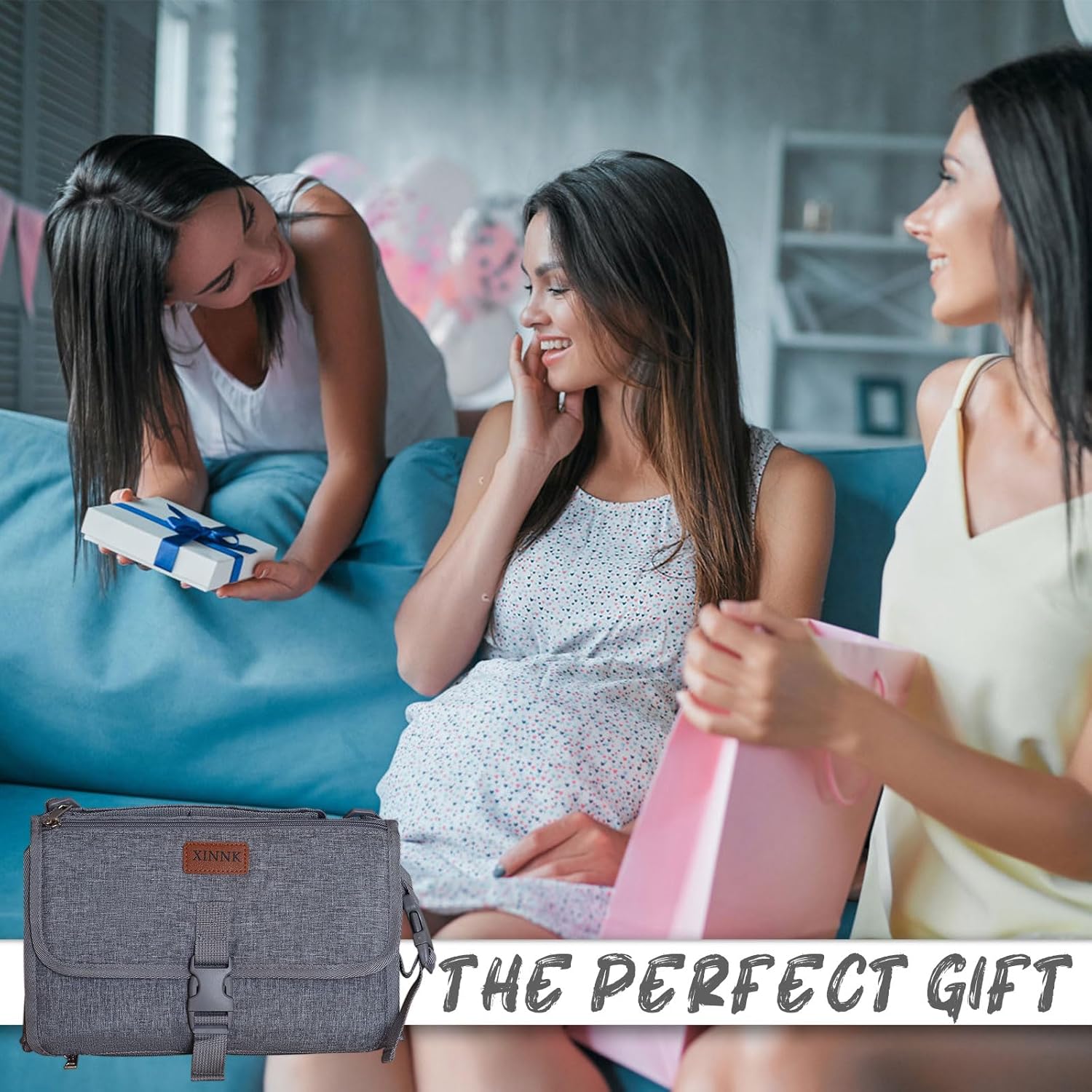 Portable Changing Pad for Baby, Travel Diaper Changing Pad for Newborn, Waterproof Baby Changing Mat, Foldable & Detachable Diaper Changing Station with Baby Wipes Pockets(Grey)